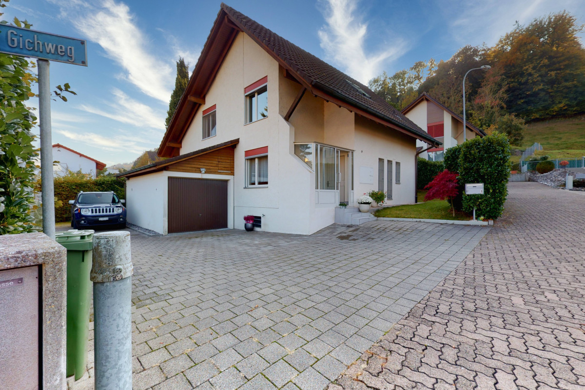 5.5-Zi.-Einfamilienhaus mit Garten, Teich & vielseitigen OptionenWillkommen in Ihrem neuen Zuhause! Dieses freistehende Einfamilienhaus aus dem Jahr 1973 vereint den Charme vergangener Jahrzehnte mit modernem Wohnkomfort. Eingebettet in einen gepflegten Garten mit idyllischem Teich, bietet die Liegenschaft reichlich Platz für Familie, Hobby und Gäste und dank eines grosszügigen, ausbaufähigen Bereichs...