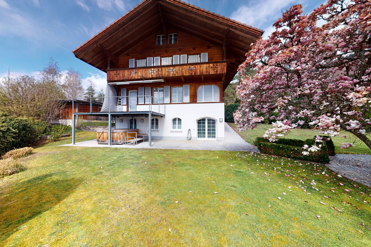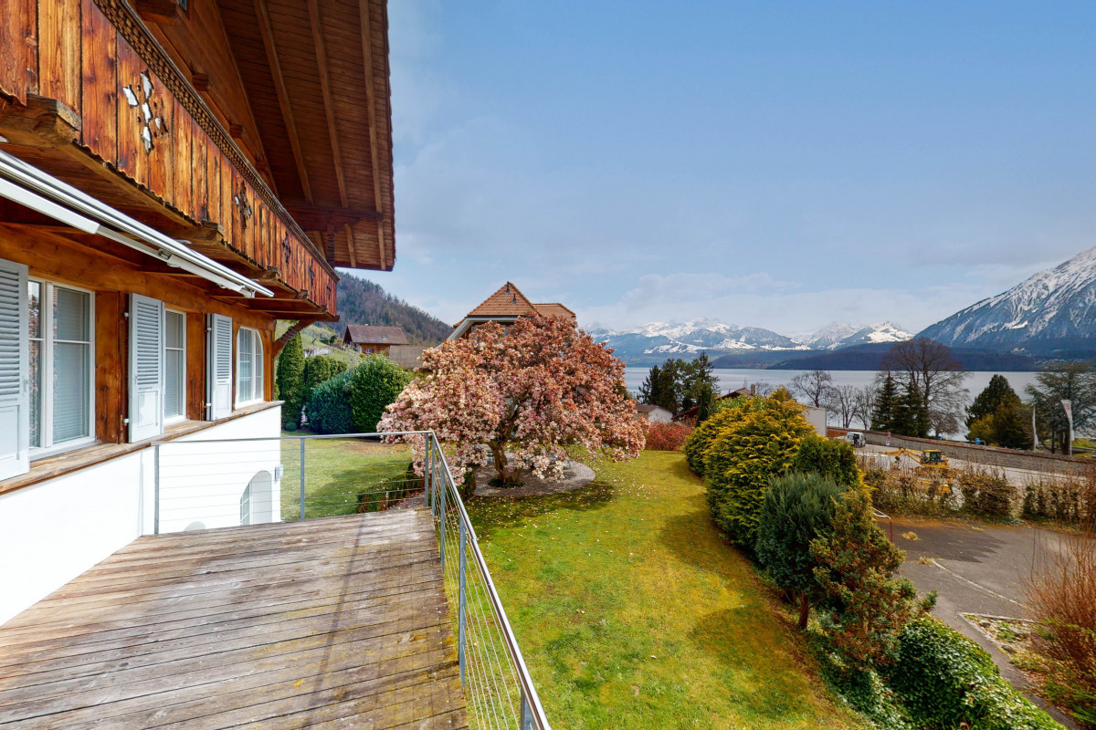 This luxury chalet-style house is extremely well located and enjoys an extraordinary view of the lake and the Alps from the large garden with magnolia and rose bushes or from the terrace and the balcony. Built with luxury materials, the interior consists of large rooms, luxurious bathrooms, a professionally equipped kitchen and a small additional 2-room flat on the ground floor. A must-see!