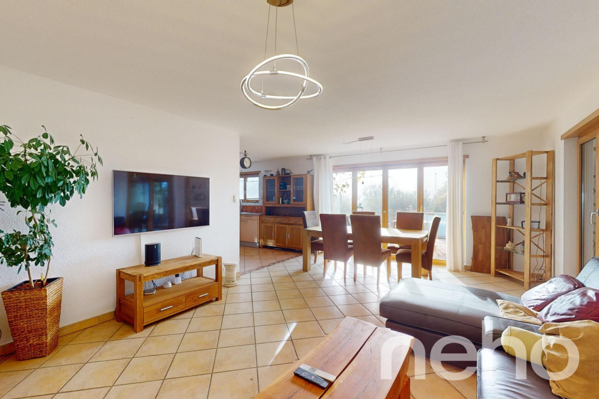 Superbe maison familiale avec vue panoramique, construite en 2003 sur une parcelle de 1'025 m² orientée sud-est.