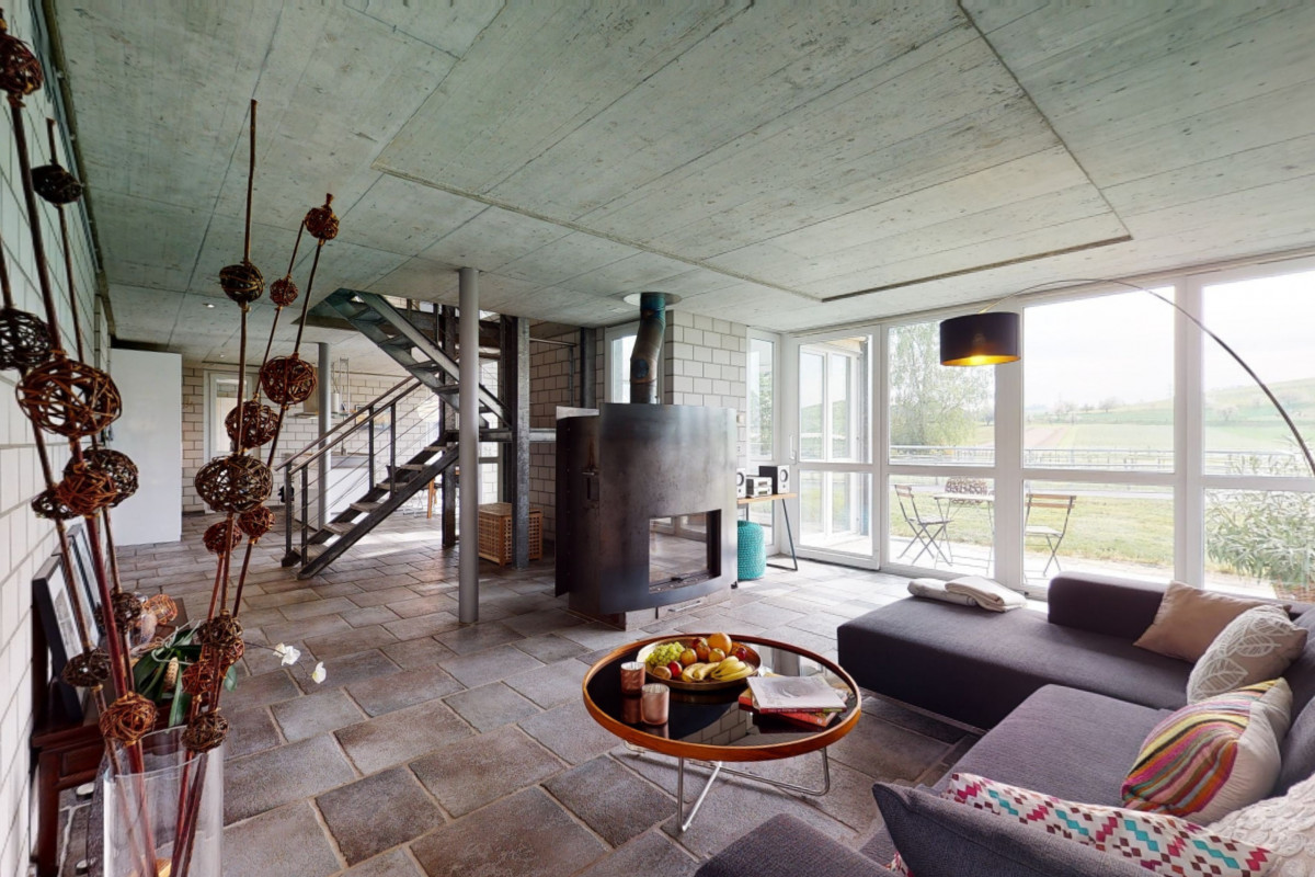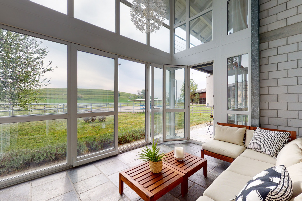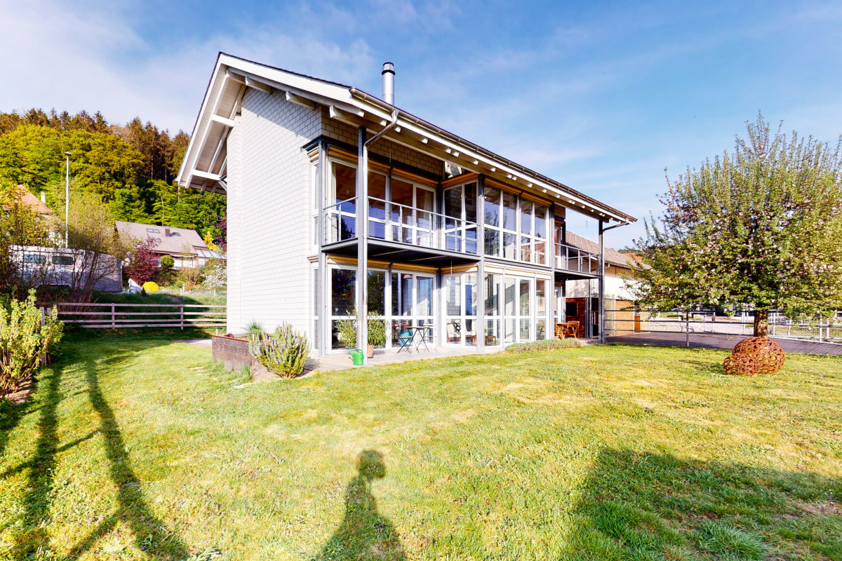Diese Liegenschaft umfasst ein modernes Traumhaus mit Garten, angrenzendem Pferdestall, eigenem Dressurviereck und viel Weideland. Es ist grosszügig und hochwertig gebaut und steht an sonniger Lage mit unverbaubarer Sicht ins Grüne.