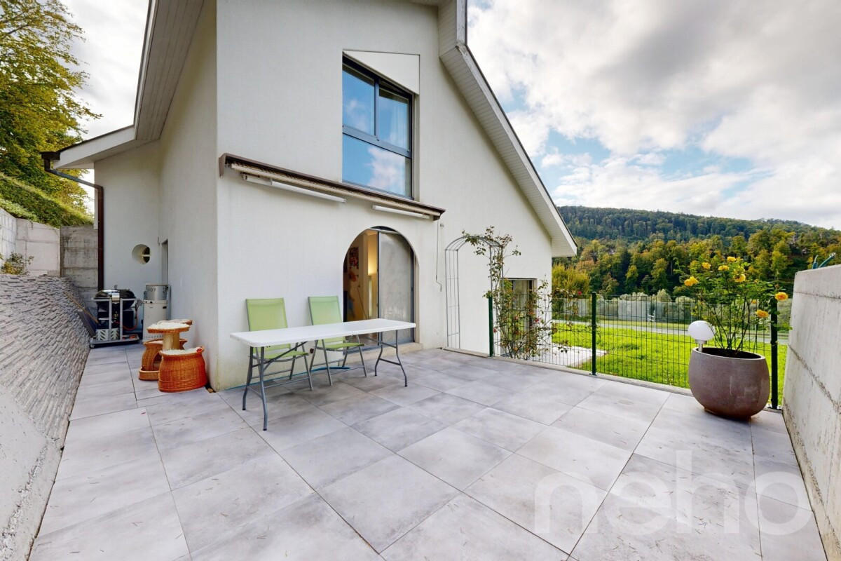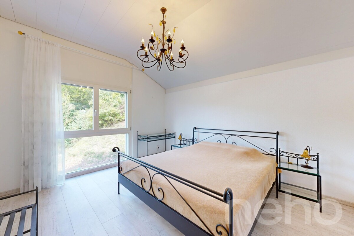 Découvrez votre nouveau paradis familial dans ce cadre paisible, entouré d'un paysage montagneux à couper le souffle. Cette charmante maison offre un environnement idéal pour les familles qui apprécient le calme et la nature. Grâce à son garage indépendant, votre véhicule sera toujours en sécurité.La maison s'étend sur trois niveaux et offre une surface habitable généreuse de 144 m² sur un vaste terrain de 861 m². L'orientation sud garantit des pièces baignées de lumière, tandis que la vue dégagée sur les montagnes procure une sensation d'espace et de liberté.Avec un total de 5,5 pièces, dont quatre chambres, deux salles de bains et des toilettes pour invités, cette maison offre suffisamment d'espace pour votre famille. Chaque pièce est conçue pour allier confort et fonctionnalité.On accède à la maison par un long escalier extérieur.Faites le premier pas vers la maison de vos rêves dans cet environnement unique. Contactez-nous dès aujourd'hui pour convenir d'un rendez-vous de visite et laissez-vous envoûter par l'atmosphère particulière de cette maison.