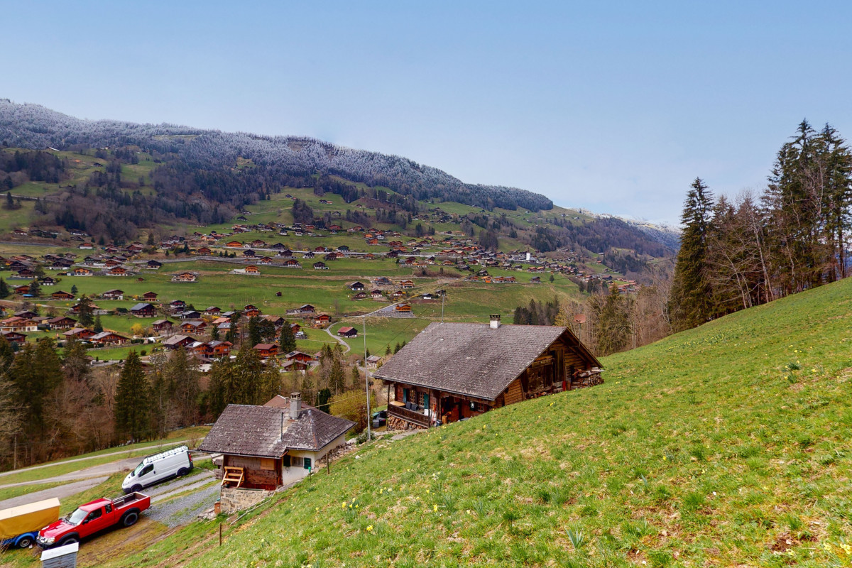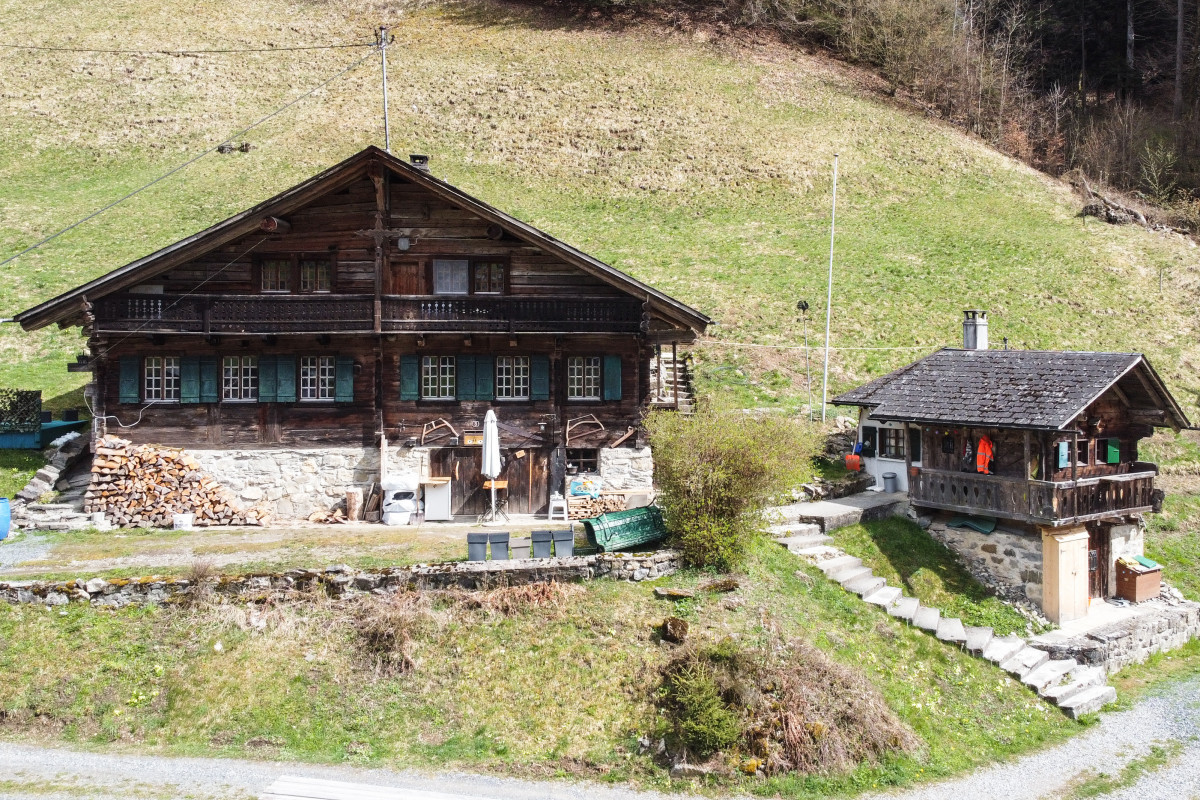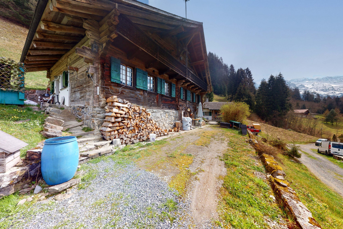 Ce superbe chalet de 1870 possède un cachet indéniable et offre une superbe vue. Situé dans un environnement calme et proche de la nature, il peut être utilisé comme 1 seul logement ou séparé en 3 appartements. Il dispose d'un total de 5 pièces et de 3 salles de bain, pour une surface utile de 340 m2. Un joli mazot est attenant au bâtiment principal, ainsi que 4 places de parc. Le tout est placé sur une grande parcelle de 1121m2, en zone agricole non soumis à la LDFR