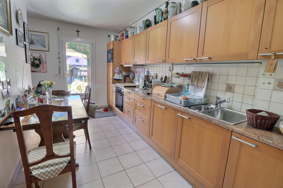 Située sur la commune de Vernier, proche de toutes commodités mais au calme, dans un quartier de villas et proche des vignes, cette maison est composée au rez-de-chaussée d'une cuisine équipée semi-ouverte disposant d'un espace dinatoire et d'un grand salon salle à manger baigné de lumière naturelle grâce aux grandes baies vitrées. Un conduit de cheminé est disponible pour installer éventuellement une cheminée ou un poêle par exemple. Depuis le salon vous accèderez à la terrasse puis au jardin. Les stores surplombant la terrasse sont électriques pour un maximum de confort.