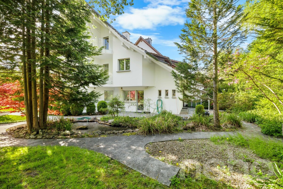 Dieses charmante Doppelhaus vereint helles, freundliches Wohnen mit einer modernen, hochwertigen Ausstattung und bietet auf ca. 262 m² Wohnfläche und 6 Zimmern reichlich Platz für Familien oder alle, die Großzügigkeit schätzen. Auf einem idyllischen Grundstück von 1.048 m² mit gepflegter Bepflanzung erwartet Sie eine grüne Oase die ihres Gleichen sucht - ein Zuhause zum Ankommen und Wohlfühlen.Das Haus verteilt sich auf vier Etagen und verfügt über vier gemütliche Schlafzimmer, zwei elegante Badezimmer sowie ein Gäste-WC mit Dusche im Erdgeschoss. Der grosszügige Wohnbereich mit direktem Zugang zur Gartenanlage wird durch bodentiefe Fenster lichtdurchflutet und schafft eine harmonische Verbindung von Innen- und Aussenbereich. Im Untergeschoss befindet sich zudem ein separater Wohnbereich, ideal für Homeoffice, Hobbys oder Gäste.Ein absolutes Highlight ist der grosszügige Aussenbereich mit Swimmingpool - perfekt für entspannte Stunden mit der Familie. Der weitläufige Garten bietet sowohl Rückzugsorte für Ruhe und Erholung als auch viel Platz zum Spielen und Gärtnern. Ein kleiner Zierteich am Eingangsbereich rundet das naturnahe Ambiente stilvoll ab.Die Immobilie überzeugt durch ihre gepflegte Substanz, eine durchdachte Raumaufteilung und hochwertige Materialien. Von den oberen Etagen geniessen Sie unverbaute Ausblicke ins Grüne, die Ruhe, Privatsphäre und Exklusivität vermitteln. Einkaufsmöglichkeiten, Schulen und alles für den täglichen Bedarf finden Sie in der Nähe. Dank der guten Anbindung sind auch Winterthur und Zürich schnell erreichbar ? ideal für Pendler.Lassen Sie sich von diesem besonderen Familienparadies begeistern und vereinbaren Sie noch heute einen Besichtigungstermin!