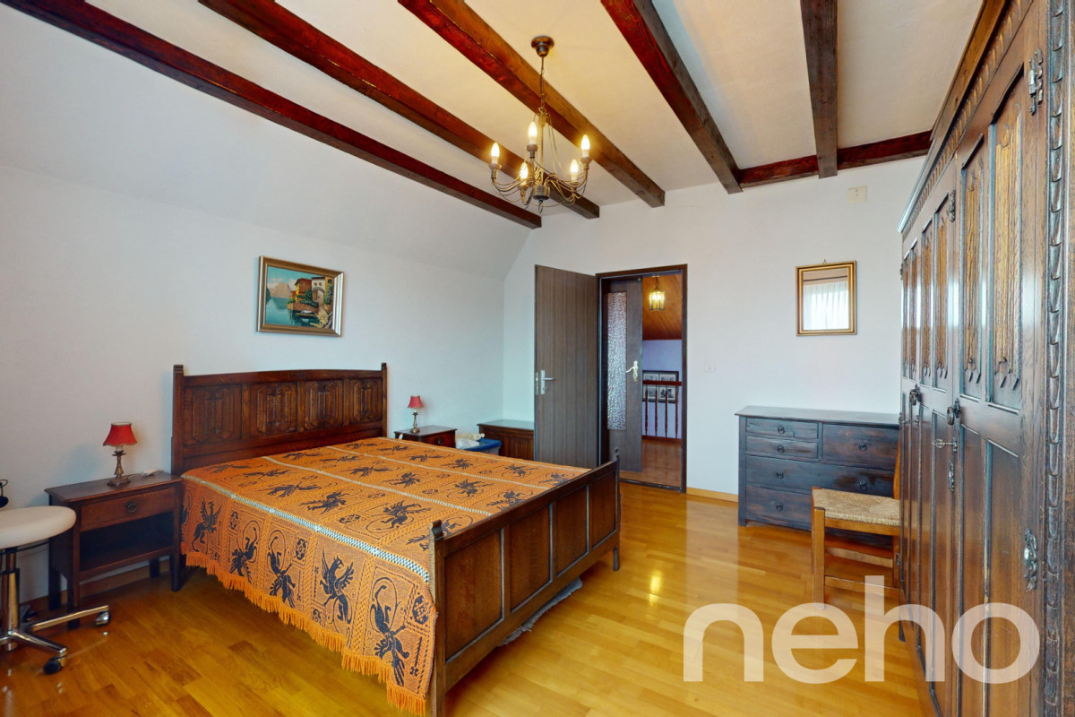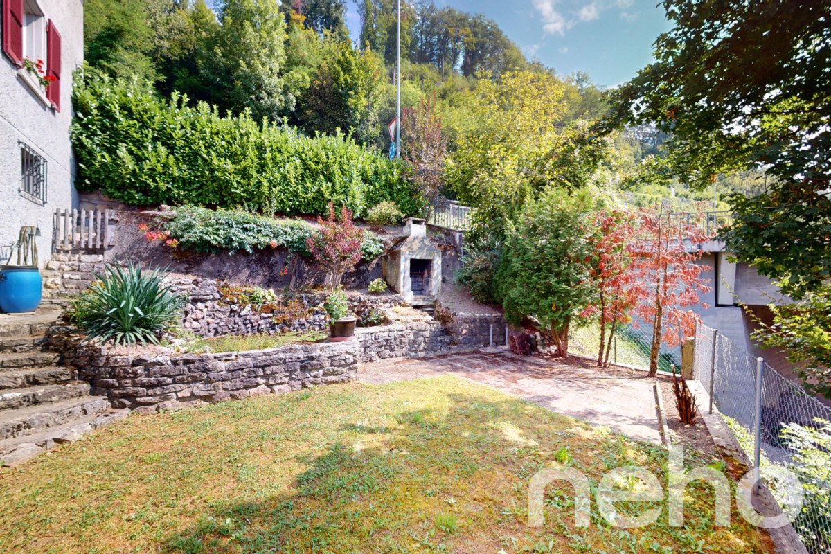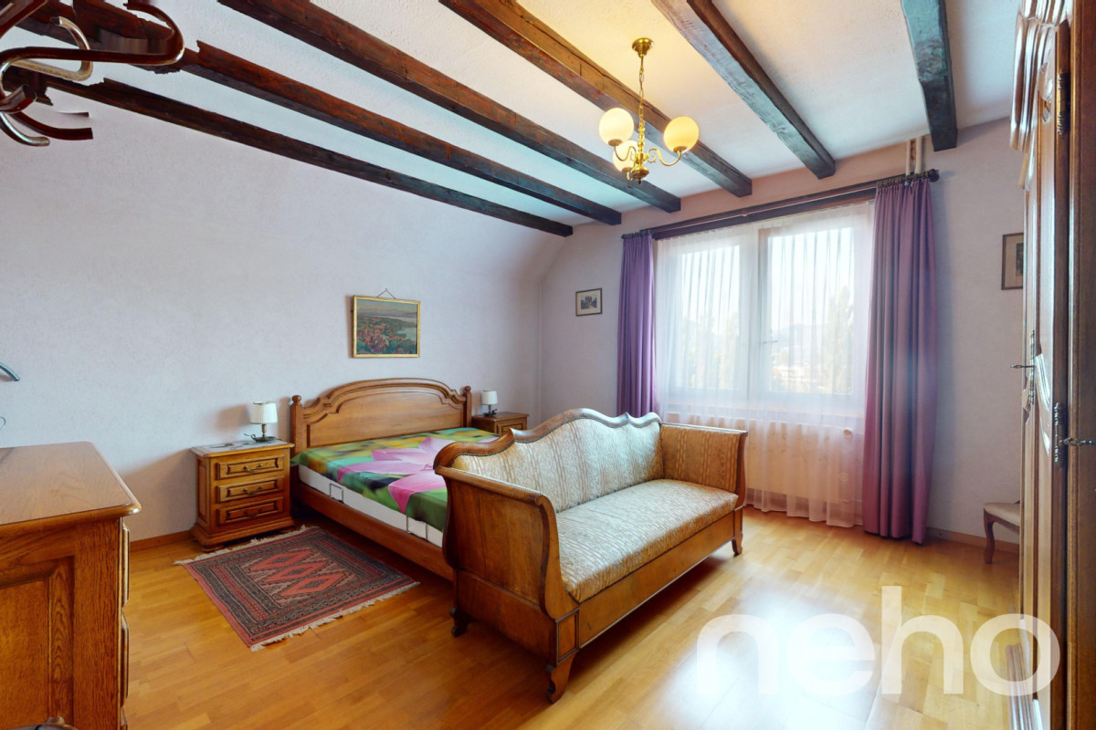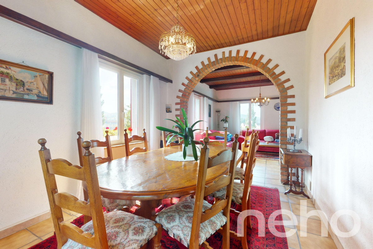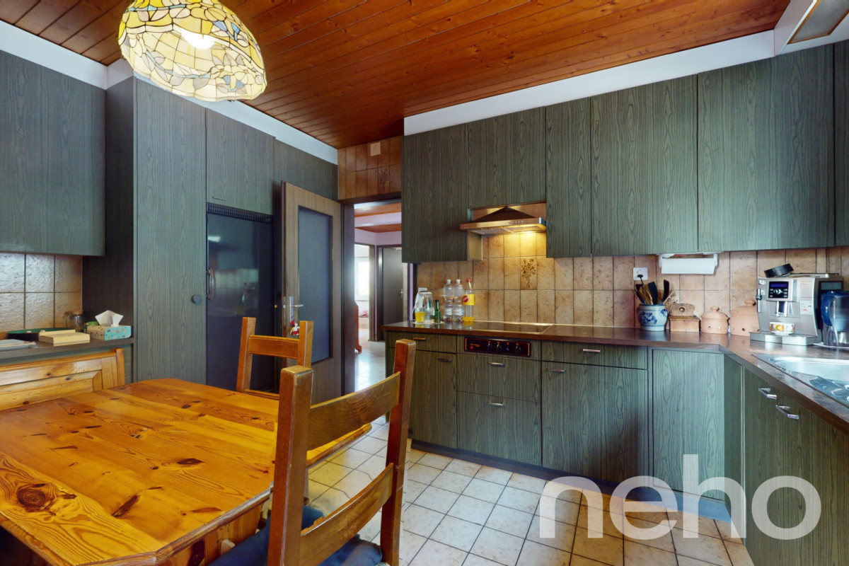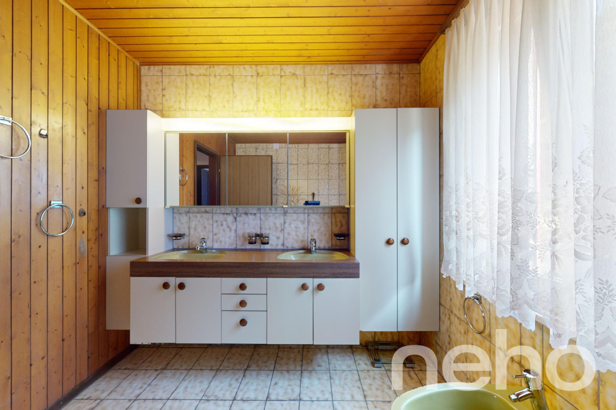 La maison dispose de 7 chambres et 3 salles de bain, offrant beaucoup d'espace pour les familles. Un WC invité supplémentaire apporte un confort supplémentaire. Le jardin entretenu complète la propriété et invite aux activités de plein air, tandis que le stationnement est disponible pour vos véhicules. Les amateurs de nature et les personnes actives apprécieront la proximité immédiate de l'Aar et de la forêt pour la randonnée, le jogging, le vélo ou les promenades avec le chien.