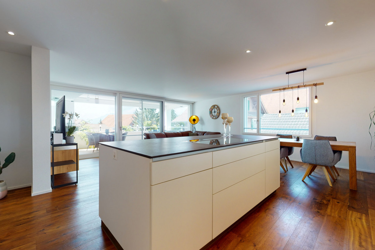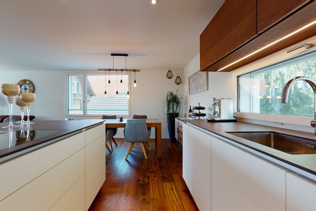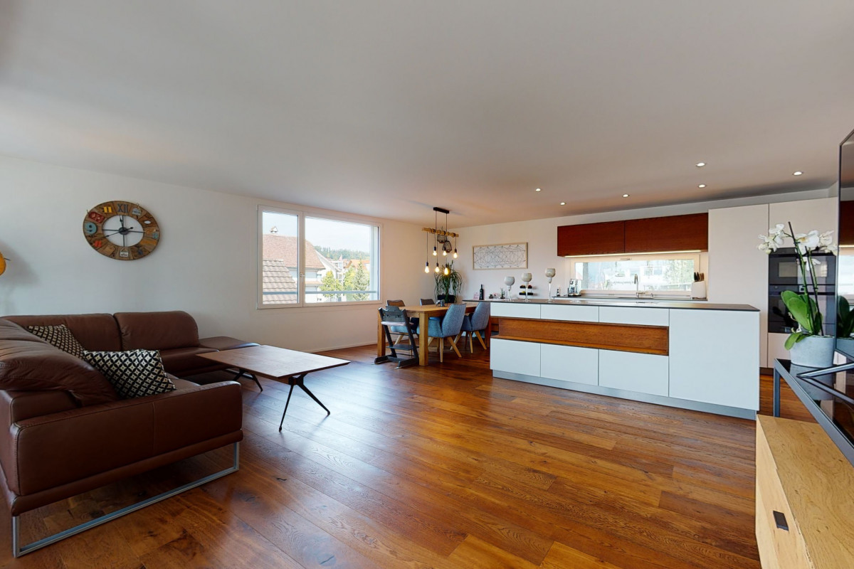 Diese schöne und moderne Wohnung befindet sich in einer hochwertigen Überbauung, ist komplett barrierefrei inkl. Lift und für Senioren und Familien geeignet. Neben den hochwertigen Parkett- und Feinstein Boden, ist die Wohnung mit einer modernen V-Zug Küche ausgestattet. Balkon, Wintergarten und die lichtdurchfluteten Räume laden die ganze Familie zum Verweilen ein und sorgen für die richtige Ambiance um Energie zu tanken.
