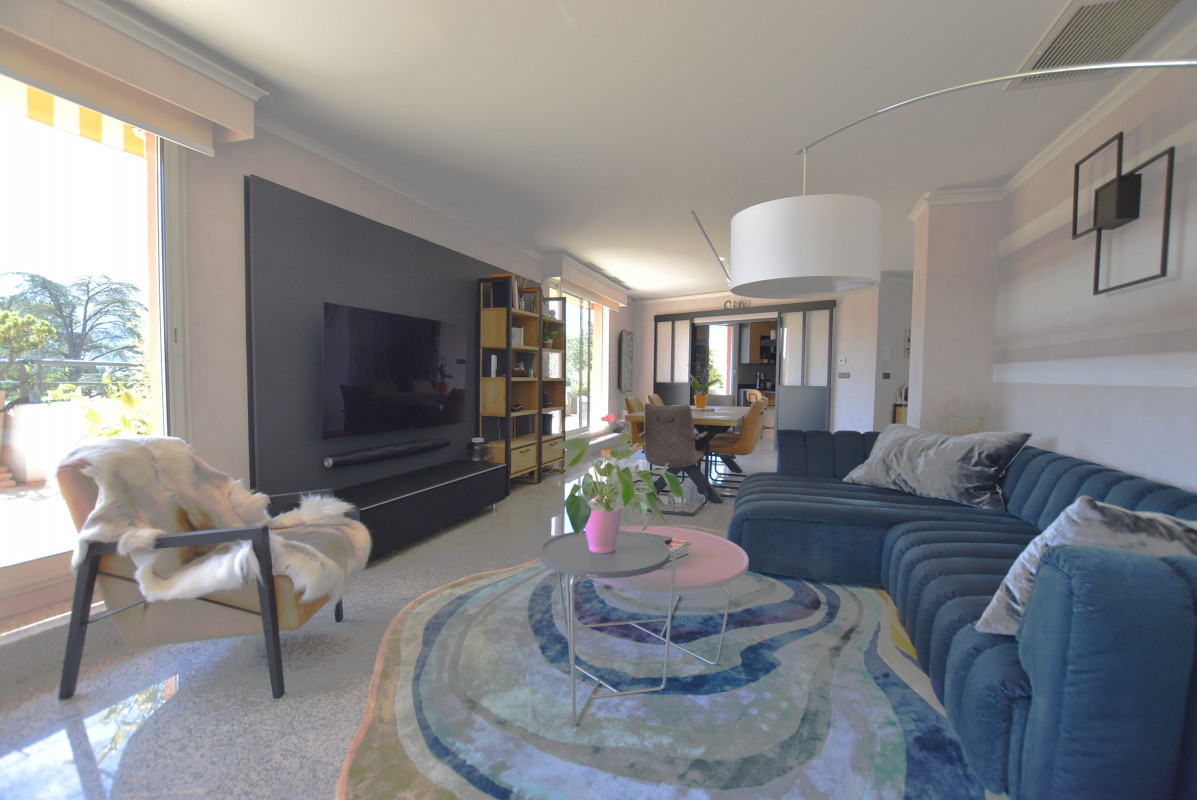Unique for very demanding buyers. This beautiful attic circled by terraces, with a superb view on the Alpes mountains, the Salève and a partial view on the Jura, will be your “coup de coeur” if you appreciate view, quietness, and the proximity at less than ten minutes walk with shops, schools and Tram 17. Annemasse railway station for the Leman Express to Geneva is at 15 minutes.