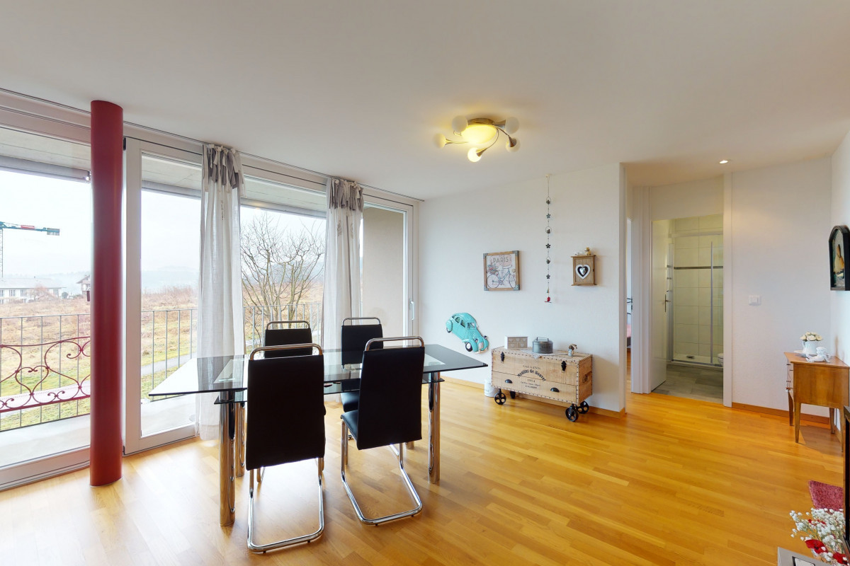 Diese ansprechende Wohnung bietet Ihnen und Ihrer Familie ein Zuhause für ein gemütliches Beisammensein. Die luftige Raumaufteilung, welche von beiden Seiten lichtdurchflutet wird, verleiht der Wohnung ein helles Ambiente. Eine grosse und hochwertig ausgestattete Küche bietet weiteren Komfort und viel Freude beim Kochen. Dank der grosszügigen Balkone geniesst man zusätzliche Lebensqualität. Die ländliche Umgebung sowie die zentrale Lage machen das Wohnen hier für Familien noch attraktiver.
