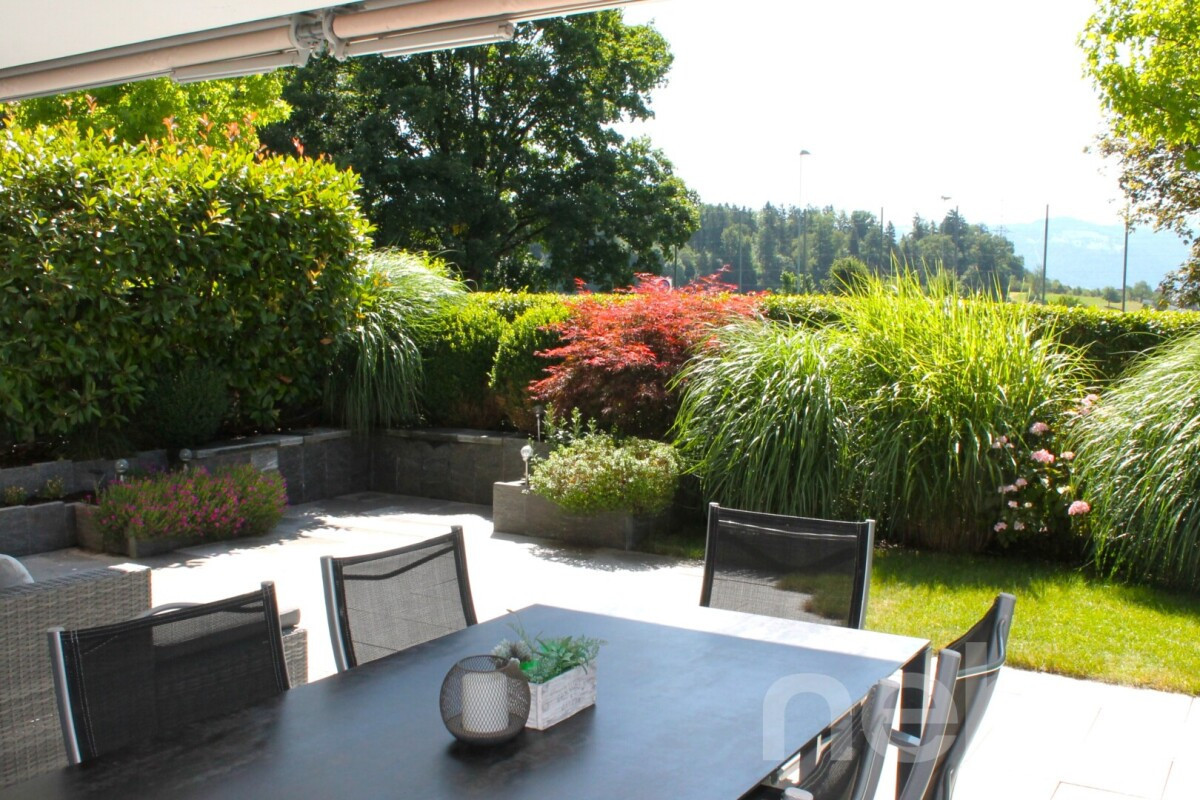 Die grosszügige Wohnfläche von 121 m² umfasst 4,5 Zimmer, darunter drei behagliche Schlafzimmer. Der stilvolle und gepflegte Zustand und das raffinierte Raumkonzept sowie ein Hauptbadezimmer und eine separate Toilette bieten zusätzlichen Komfort und flexible Nutzungsmöglichkeiten. Eine einladende, ausschliesslich zu Ihrer Nutzung gehörende Gartenanlage lädt zu entspannenden Stunden im Freien ein - ideal für Familien.