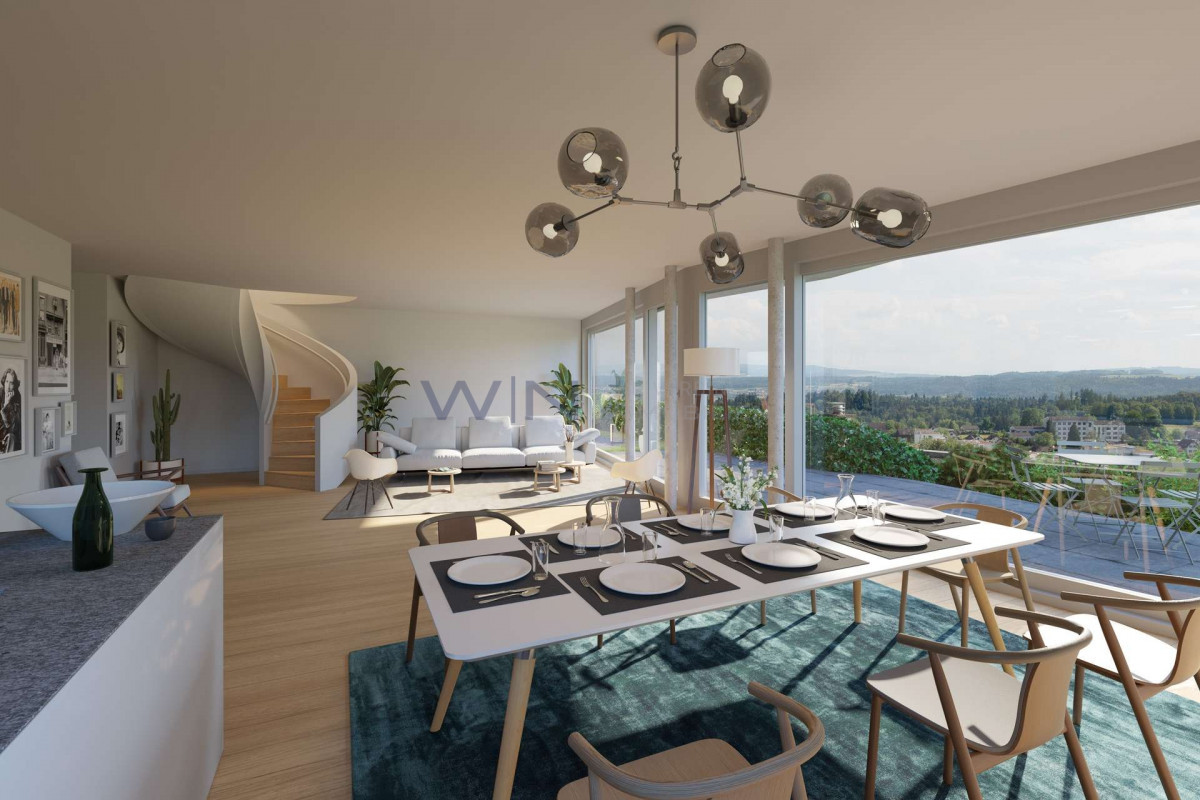 Ein Zuhause mit Weitblick ? gestaltet für Menschen mit Anspruch und Perspektive. Diese aussergewöhnliche Maisonette-Attikawohnung vereint zeitgemässe Architektur mit einem Wohngefühl, das Ruhe, Weite und Stil ausstrahlt. In erhobener Lage, lichtdurchflutet und geprägt von klarer Formensprache, entfaltet sich ein Lebensraum, der nicht laut sein muss, um Eindruck zu hinterlassen. Die Gestaltung folgt einem fein durchdachten Konzept ? elegant, offen, harmonisch gegliedert. Grosse Fensterflächen lassen Innen- und Aussenraum ineinanderfliessen und machen den Blick zur Landschaft zum festen Bestandteil des Alltags. Räume sind bewusst komponiert: mit hochwertigen Materialien, ausgewogenen Proportionen und einer Atmosphäre, die einlädt - zum Ankommen, zum Innehalten, zum Gestalten. Dieses Zuhause ist mehr als eine Immobilie ? es ist ein persönlicher Raum für Menschen, die Klarheit lieben, Qualität schätzen und sich nicht mit dem Gewöhnlichen zufriedengeben. Ein Ort für neue Perspektiven ? und ein neuer Abschnitt im Leben. Mit Haltung, mit Substanz und mit Weitblick in jeder Hinsicht.