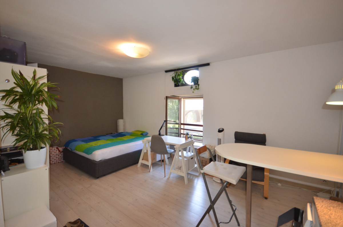 L’espace de vie, bien agencé et lumineux. L’environnement est particulièrement calme tout en restant proche des commodités, avec un arrêt de bus à quelques pas. Un petit espace extérieur à usage privatif, ainsi qu'un espace collectif, fait partie de ce bien.