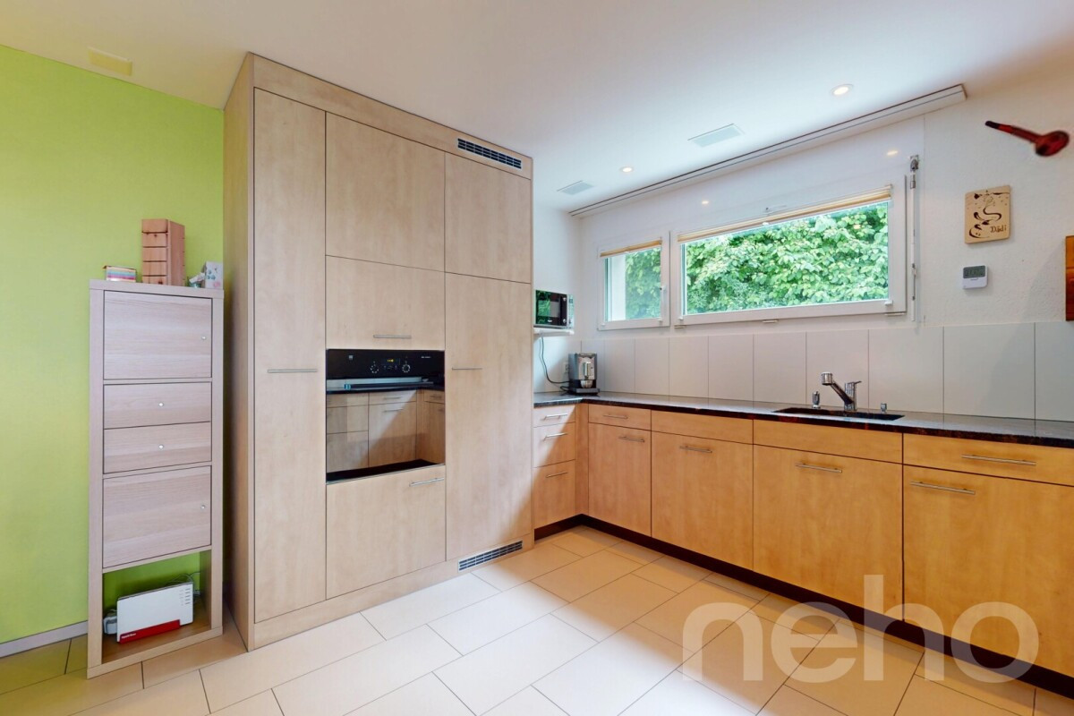 Zeitgemäss wohnen, in Minergie-Gebäude am WaldrandErleben Sie zeitgemässes Wohnen inmitten malerischer Natur! Die offene Küche mit Miele Geräten und Kochinsel lädt zum kulinarischen Genuss ein. Entspannen Sie in zwei luxuriösen Badezimmern. Die gemütliche Terrasse bietet einen herrlichen Blick ins Grüne. Geniessen Sie den edlen Feinsteinboden im Wohnbereich und das warme Eiche-Parkett im Schlafzimmer....