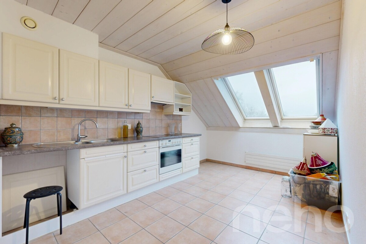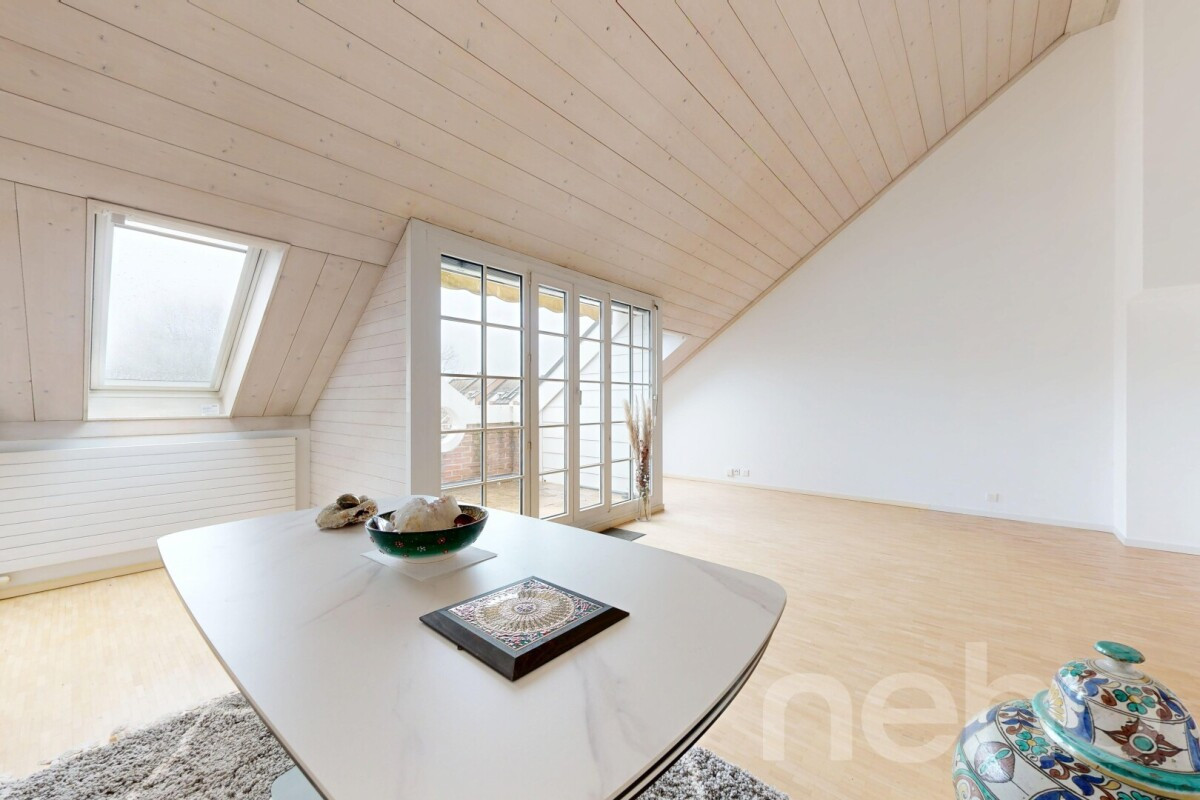 Duplex en attique lumineux et rénové avec cachetAu c?ur d'une petite copropriété de 9 lots construite en 2003, ce duplex en attique entièrement rénové en 2022 séduit par son alliance réussie entre modernité et confort.Dès l'entrée au 1er étage, vous découvrez un vaste espace de vie baigné de lumière, agrémenté d'un poêle à pellets qui crée une atmosphère chaleureuse et conviviale....