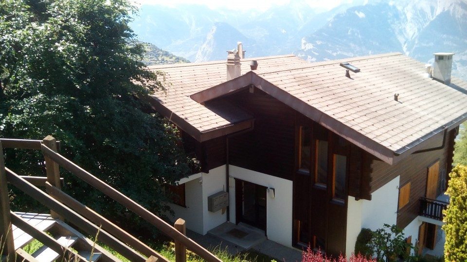 Es genießt eine privilegierte Lage, sehr ruhig und bietet einen herrlichen Blick auf das Rhône-Tal und das Wallis und die Berner Alpen.