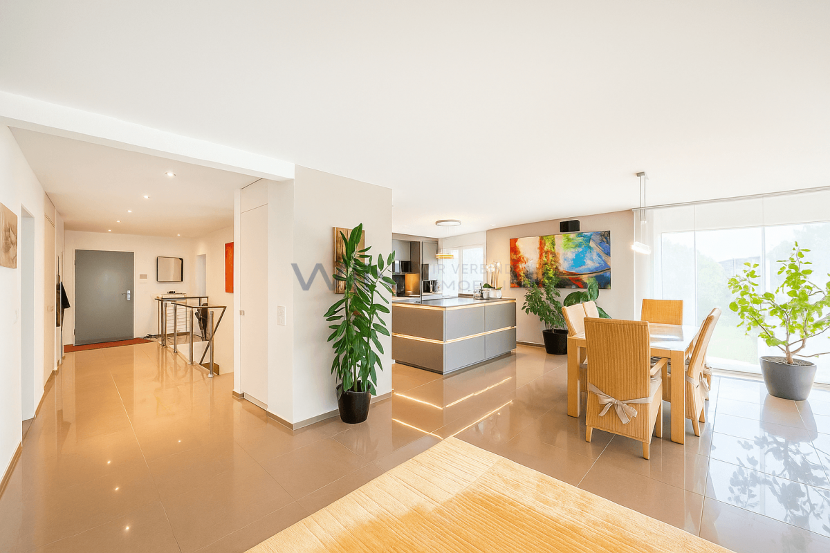 Auf rund 170 m² Wohnfläche entfaltet sich ein Wohnkonzept, das sofort begeistert: lichtdurchflutete Zimmer, klare Linien und hochwertige Materialien schaffen ein harmonisches Ambiente. In den Zimmern wurden neu italienische Feinsteinzeugplatten in Holzoptik verlegt ? pflegeleicht, elegant und warm im Ausdruck.