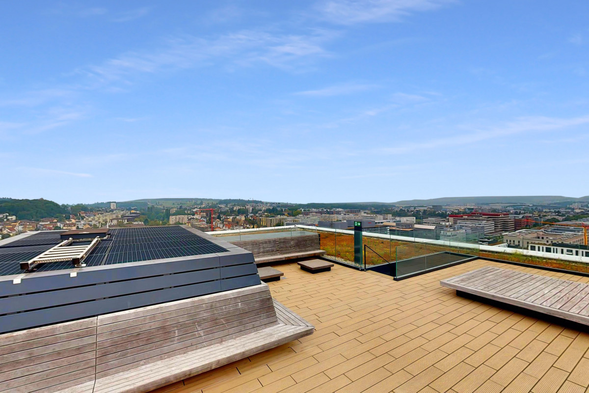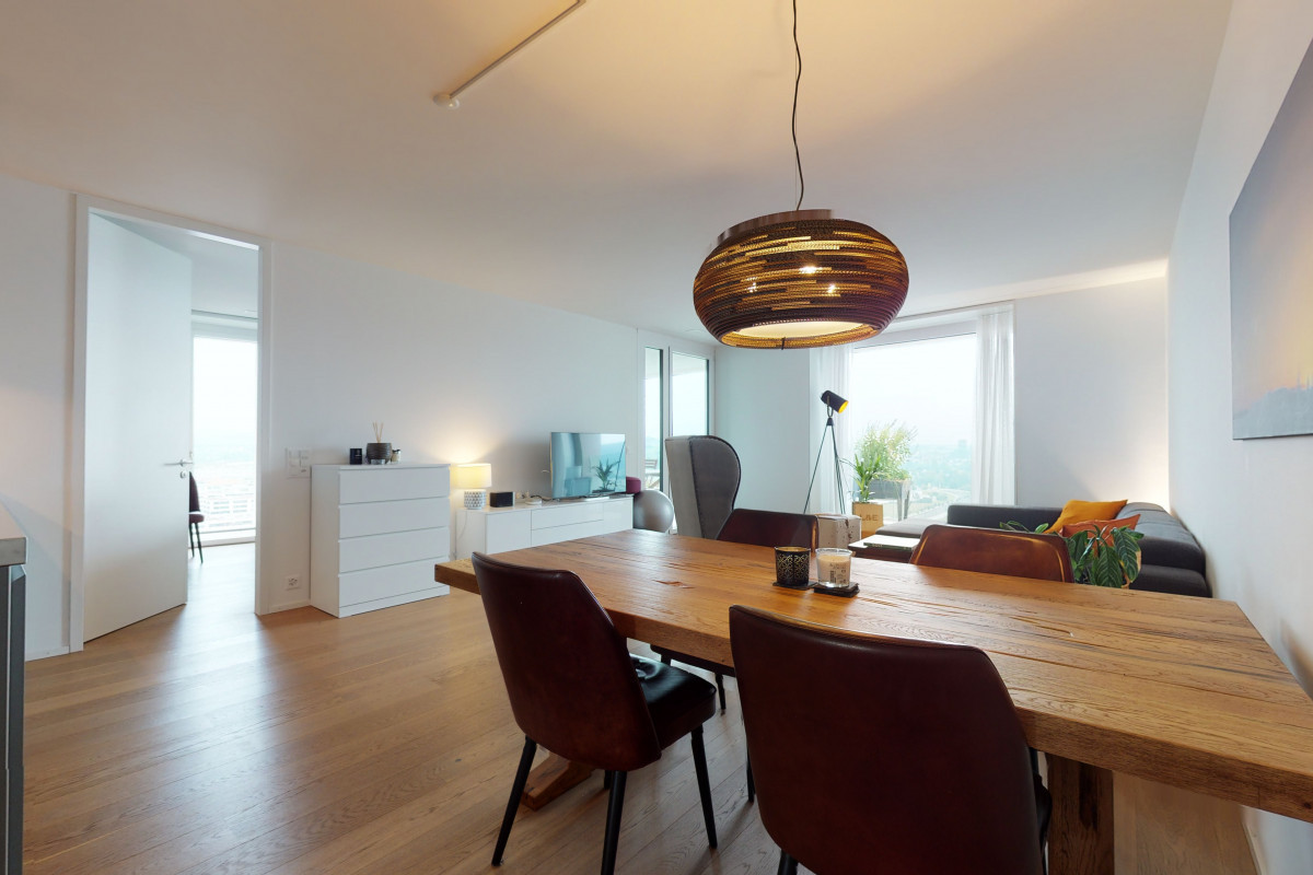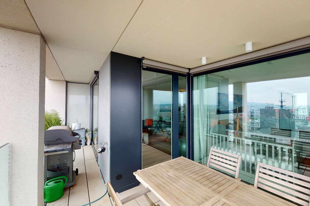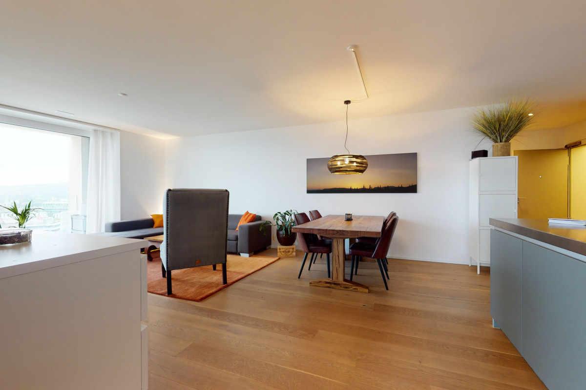 Dieser neuwertige Bau (Baujahr 2015) ist perfekt geeignet für Stadtmenschen mit einem Flair für modernes und hochwertiges Wohnen. Die Wohnung im 16. OG bietet viel Privatsphäre, sowie eine 270° Aussicht vom Uetliberg über die Glarner Alpen bis zum Flughafen Zürich. Mitten in der Stadt (Zürich HB und ZRH ist in 15 Minuten erreichbar) residieren Sie in Ruhe und Gelassenheit mit einer einmaligen Aussicht. Wir freuen uns auf Ihre Anfrage.
