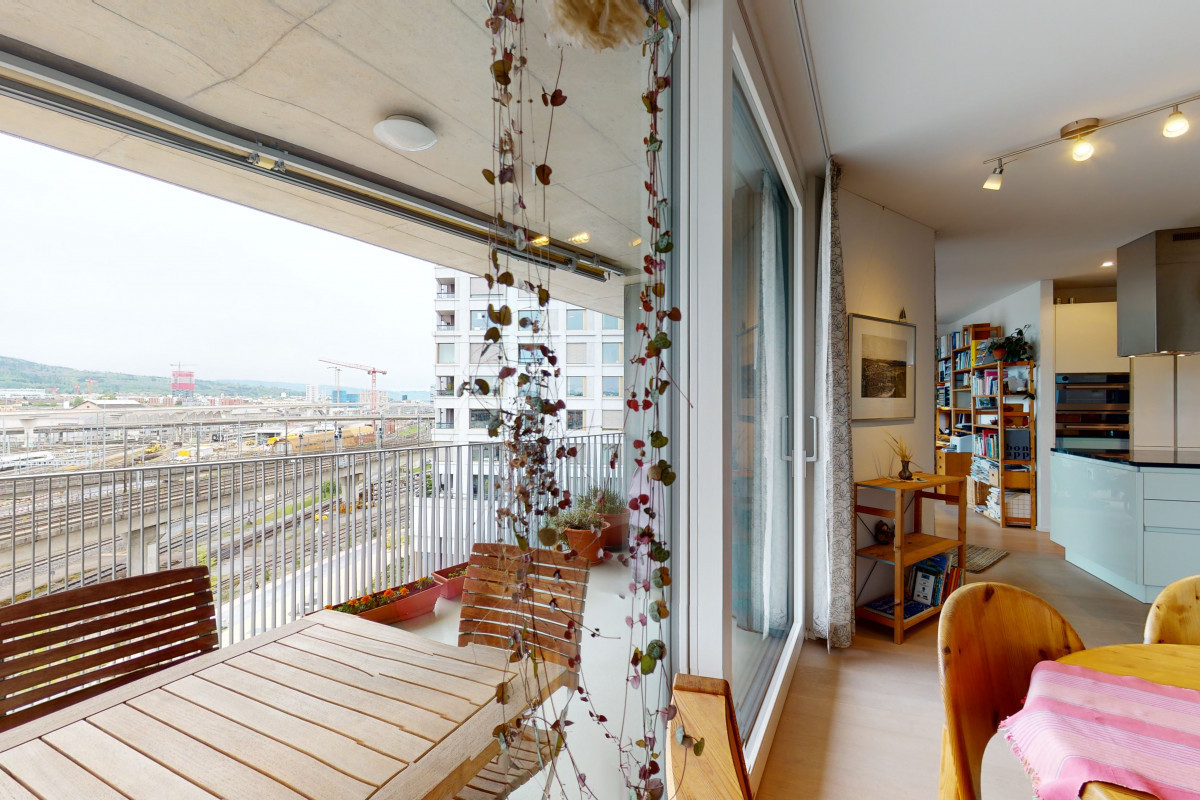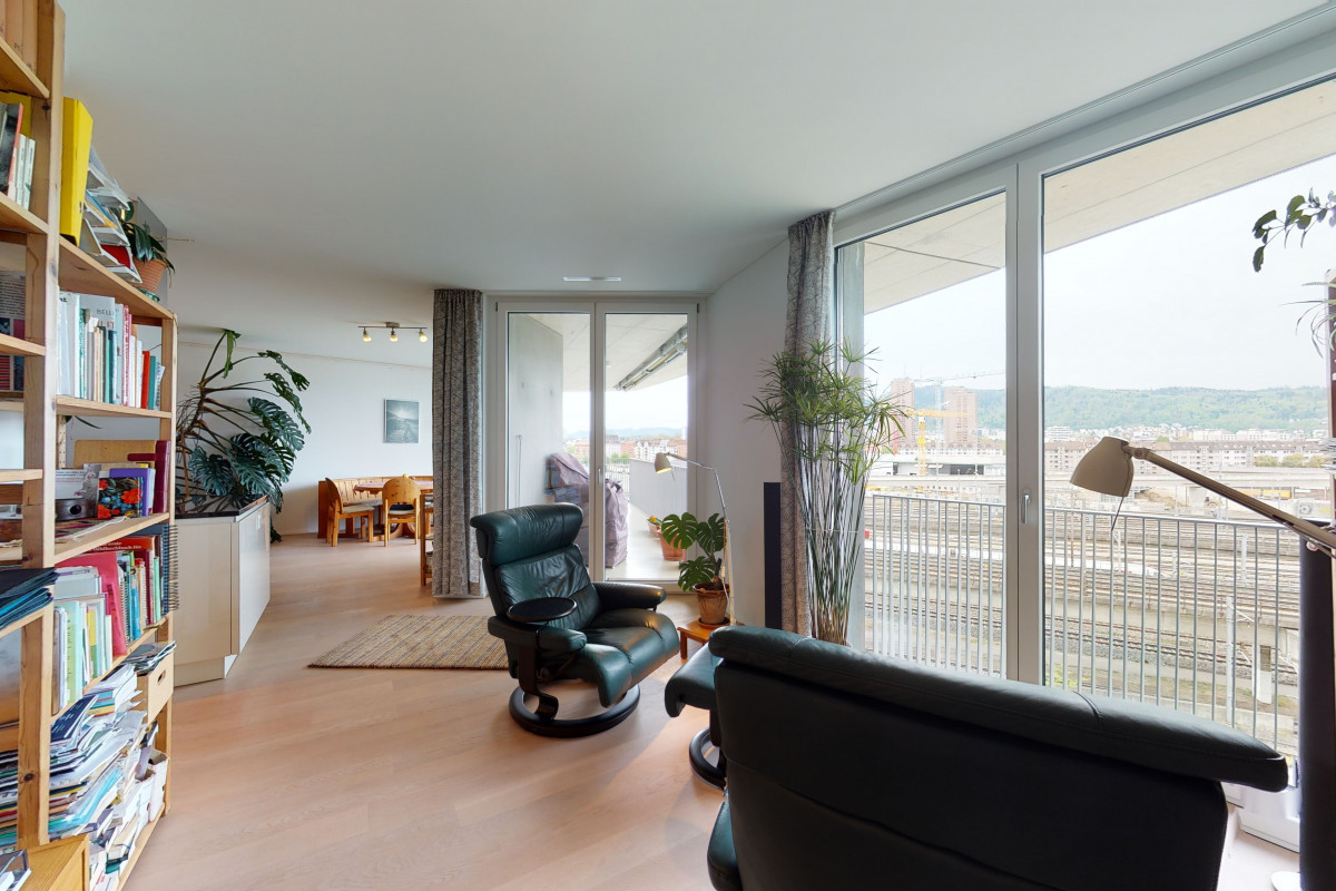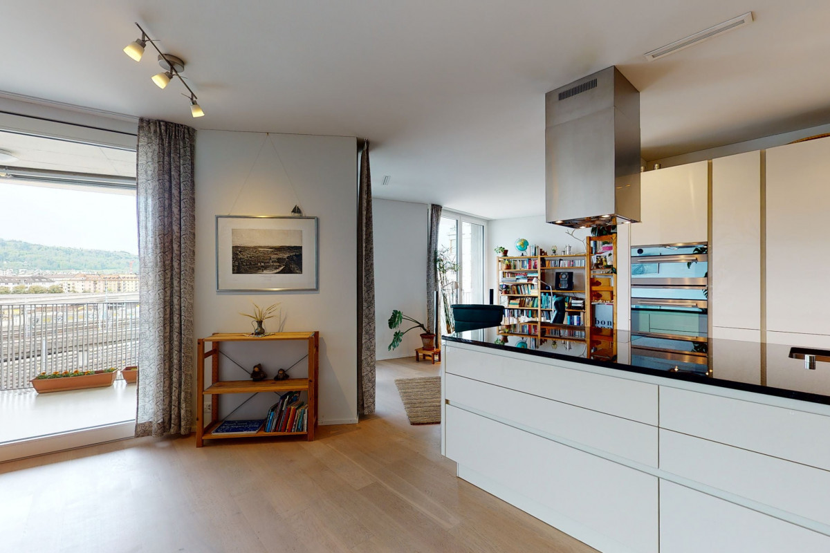 Der Blick aus den lichtdurchfluteten Räumen der exklusiven 3.5-Zimmerwohnung zeigt ein riesiges urbanes Panoramabild im Trendquartier Zürich-West. Die Minergie-zertifizierte Wohnung wurde 2013 gebaut und ist hochwertig materialisiert. Die Zimmer sind grosszügig konzipiert und dank den raumhohen Fenstern sehr hell, die Raumaufteilung ist praktisch angelegt. Der Einkauf, kulturelle Events, Sport und Gastronomie sind gut zu Fuss erreichbar. Der S-Bahnhof ist nur 3 Min. entfernt.