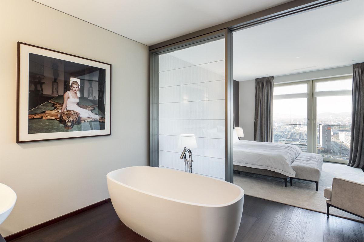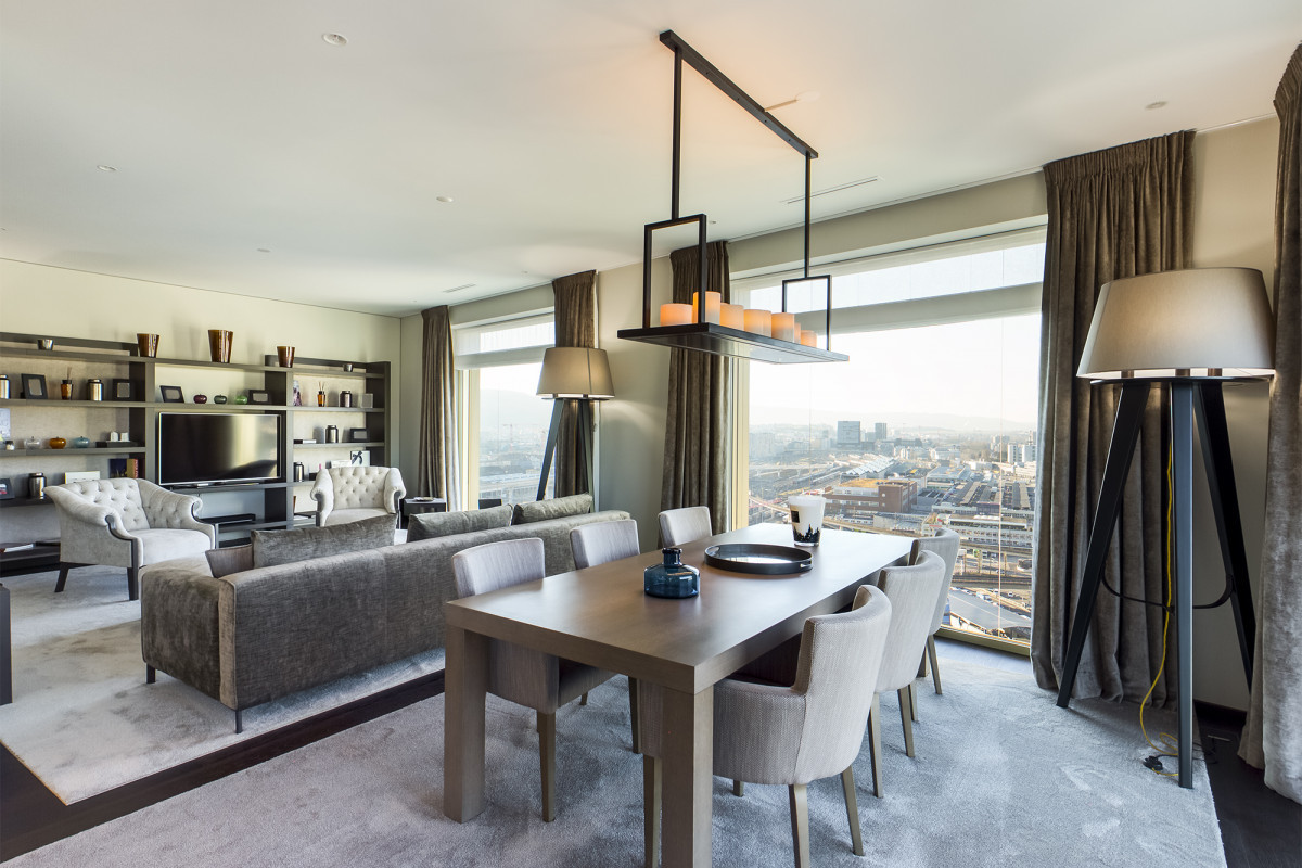 Lichtdurchflutete hohe Räume dieser exklusiven 4.5 Zimmerwohnung bieten fast endlose Panorama-Weitsicht und den Lebensstil eines Luxushotels dank exklusivem Service im auftrebendem Trendquartier Zürichs. Die Küche von Boffi und die Badekultur von Bagno Sasso vereinen minimalistisches Design mit Funktionalität. Als Eigentümer geniessenen Sie über den Etagen des Renaisssance Tower Hotels von Health Club, Sauna und Dampfbad sowie Executive Lounge Roomservice rund um die Uhr.