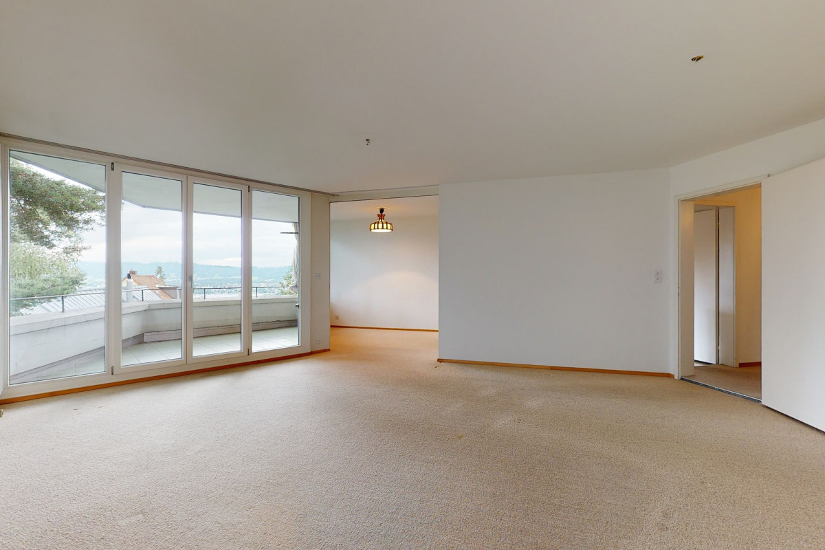 This very quietly situated 5.5 room apartment captivates with its original room concept. The rooms are bright and spacious. The south-facing orientation promises lots of sunshine on the balcony with partial mountain and lake views. Schools, public transport, shopping facilities and a forest with playground are in the immediate vicinity.