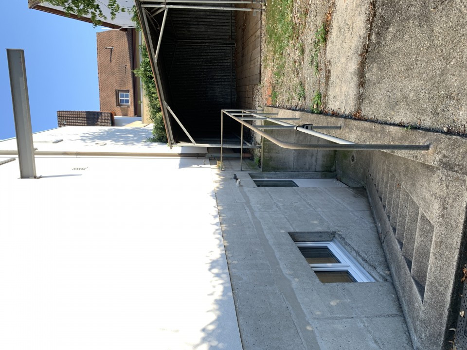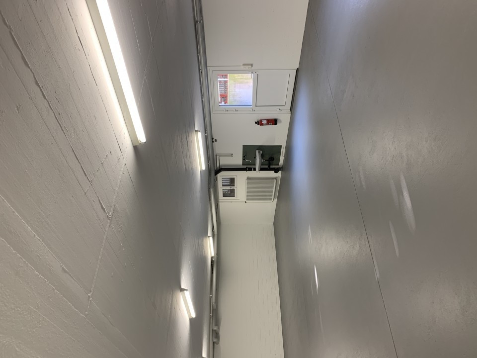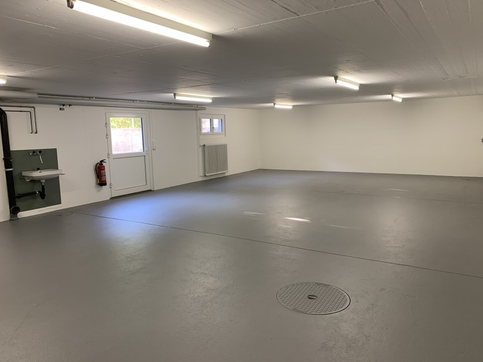ca. 94 m2 grosser, beheizter Raum mit Fenster im UG (ohne Lift) und direktem Zugang über Kellertreppe (mit links und rechts Rampe für Veloanhänger)