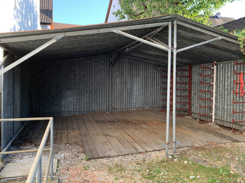Objekt EG (Metallschopf und Aussenfläche mit Kellertreppe in Lagerraum/ Werkstatt UG