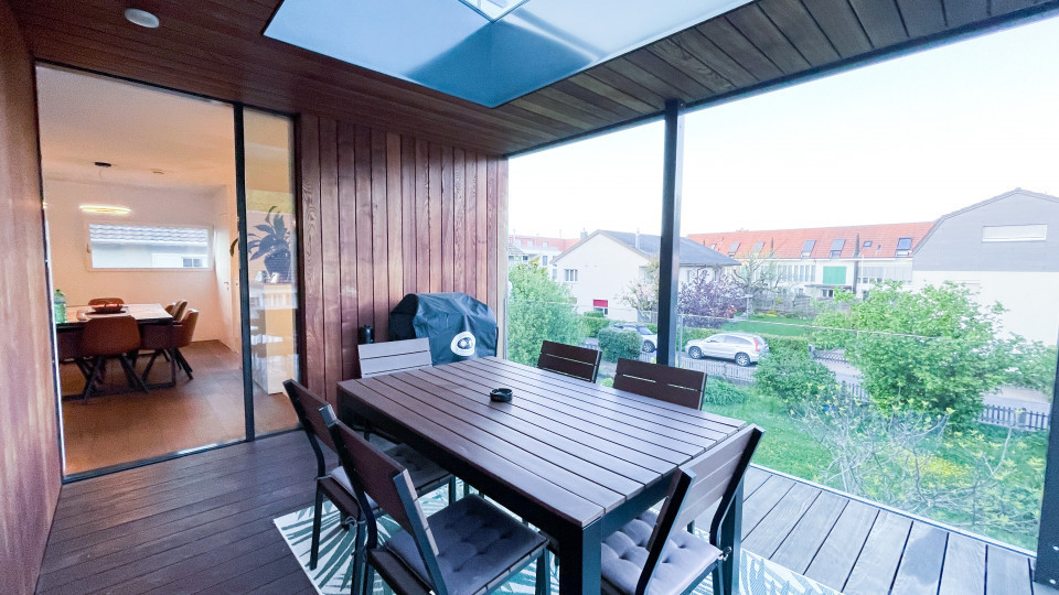 Dieses luxuriöse und moderne Einfamilienhaus liegt an perfekt sonniger Lage im Zentrum von Pratteln, an der Emanuel Büchel-Strasse 16.