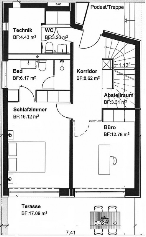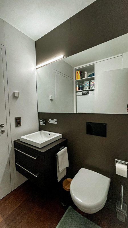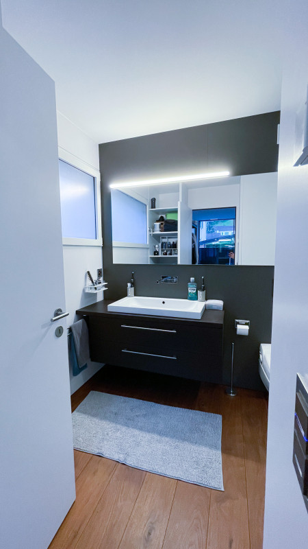 Weiter hat es im Erdgeschoss noch ein separates (Gäste-) WC mit Waschturm, Einbauschrank und dahinter den Technikraum. Das Haus verfügt über eine Wärmepumpe sowie eine PV-Anlage auf dem Dach welche das Haus mit eigenem Strom über den Tag hindurch versorgt.