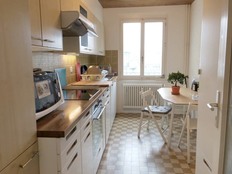 Küche, Bad und WC teilst du mit den zwei Mitbewohner/innen. Die komplett neue Küche bietet viel Platz für alle.