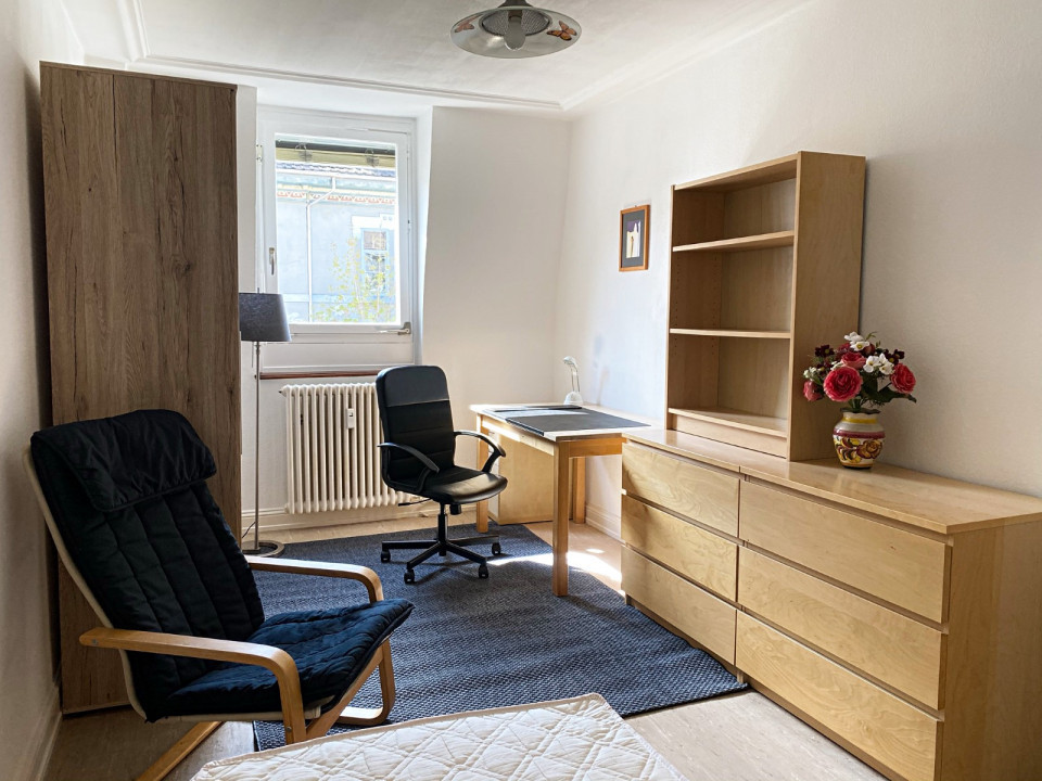The furnished shared apartments are located in a beautifully renovated apartment building of a Basel style house. The house has three shared apartments. There are three shared apartments in the house, each with three rooms. Doctoral students, doctors, architects, IT specialists, consultants and the like live in our shared rooms.
