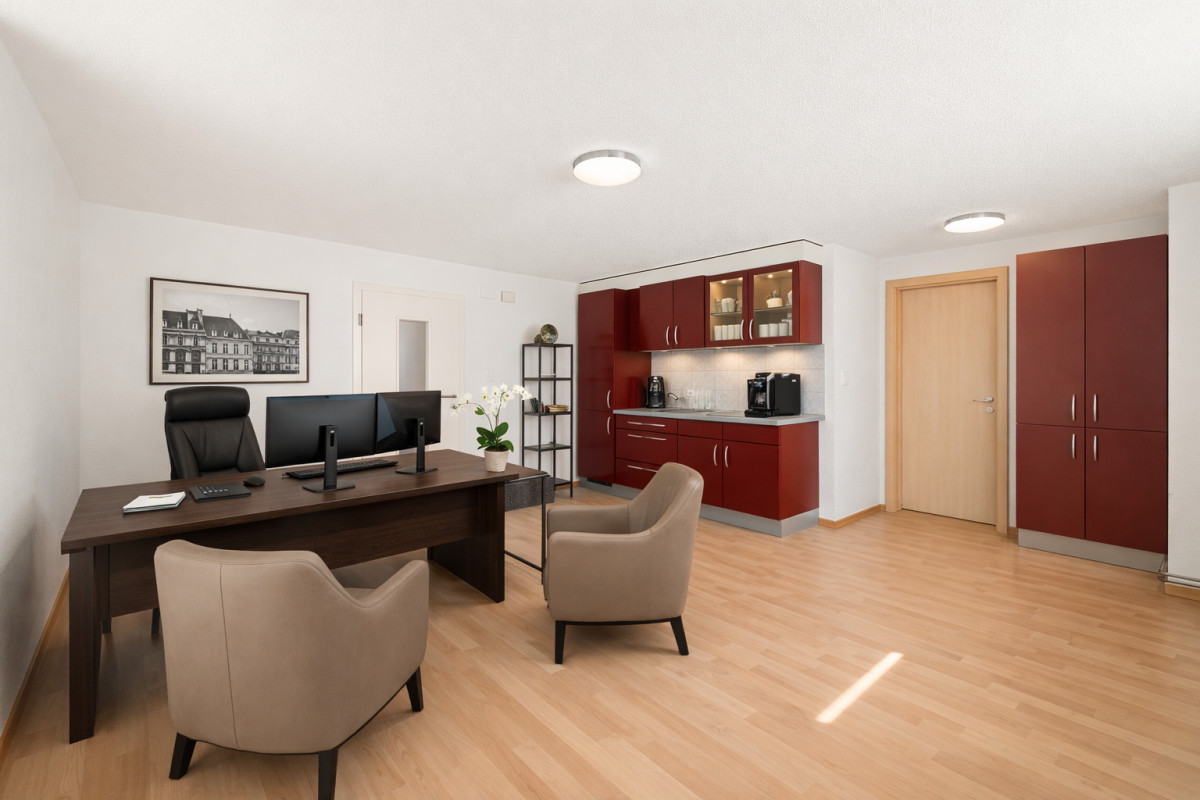 La pièce principale permet d’accueillir la clientèle dans un cadre professionnel et soigné,