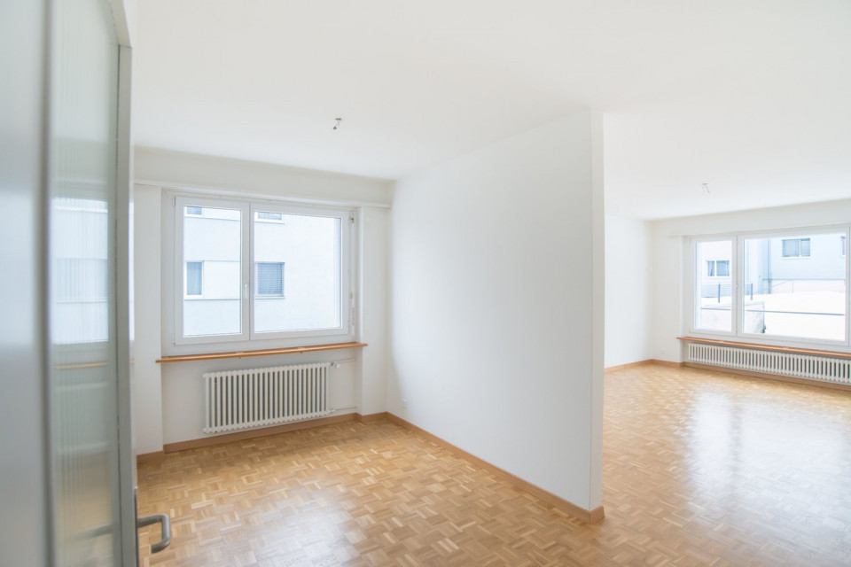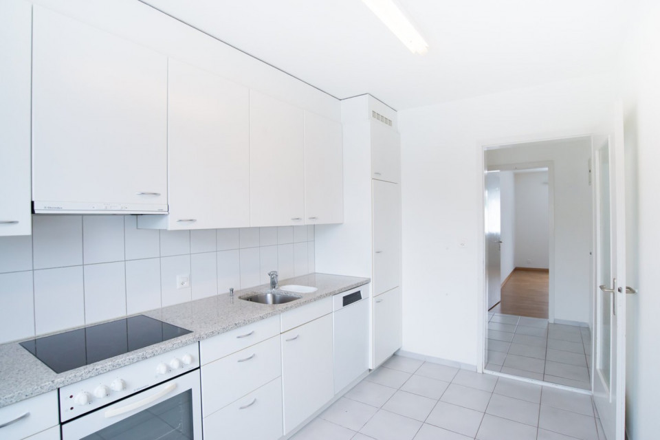 Wohn-, Schlaf- und Kinderzimmer mit ParkettbodenKüche, Badezimmer und Korridor mit hellem PlattenbodenGrosszügiger Wohn- und EssbereichHelle Küche mit Glaskeramikherd, Geschirrspüler, Backofen und viel StauraumBadezimmer mit WC, Spiegelschrank, Waschbecken und BadewanneGemütlicher Balkon mit Aussicht ins GrüneEigenes KellerabteilWaschküche und Trockenraum zur MitnutzungHaustiere sind erlaubt.