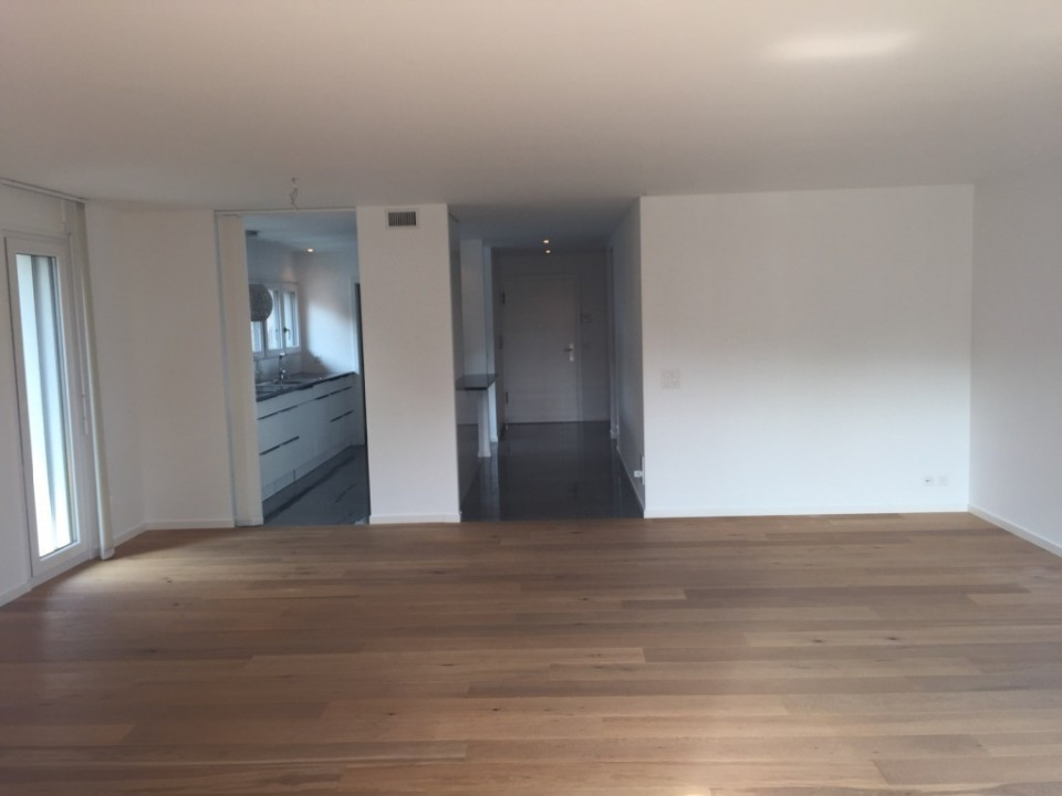 Die Wohnung verfügt über 4.5 grosszügige Zimmer mit Panoramafenstern und schönen Parkettböden. Zwei Badezimmer sind jeweils mit einer freistehenden Badewanne und einer Dusche ausgestattet. Eine gedeckte Terrasse und ein kleiner Garten machen diese Wohnung besonders attraktiv.