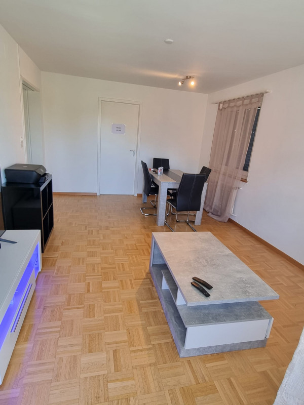 3 Mitbewohner in einer 4-Zimmer-Wohnung. Bestehend aus Küche, Bad und Wohnzimmer (ausgestattet und möbliert) und Balkon.Er liegt in der Nähe des Bahnhofs von Wilerweg in Murten.