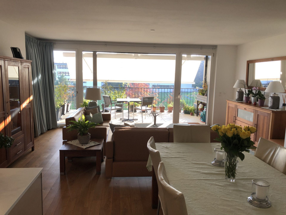 Cet appartement traversant de 4,5 pièces est idéalement situé dans un cadre de verdure et de calme. Vue bien dégagée.
