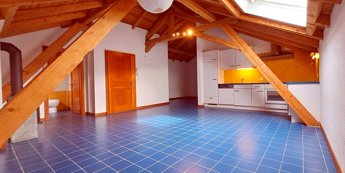 A louer à la Rte Cantonale 72 à Vétroz, un charmant 2 pièces au dernier étage d’un immeuble résidentiel de 3 étages.
