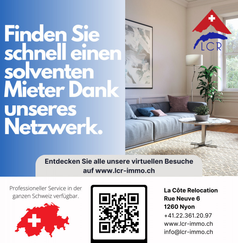 Sie haben Ihre ideale Wohnung noch nicht gefunden? Wir laden Sie ein, alle unsere Angebote auf www.lcr-immo.ch zu finden. Sparen Sie Zeit, indem Sie sich unsere virtuellen 3D-Touren anschauen!