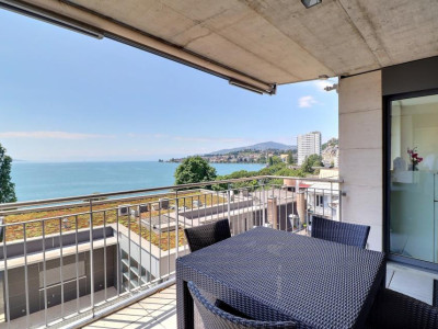 Superbe appartement de 5,5 pièces d'environ 158 m2 + un grand balcon de 22 m2 proche du centre de Montreux, avec une très jolie vue sur les montagnes et le lac Léman. Ce bien offre les commodités d'une villa dans un petit immeuble de 5 lots seulement avec un jardin commun, une piscine et une place de jeu communes dans un environnement très calme et privé. Distribué sur 1 niveau, il se compose