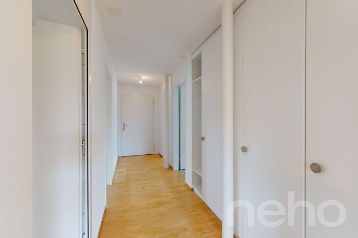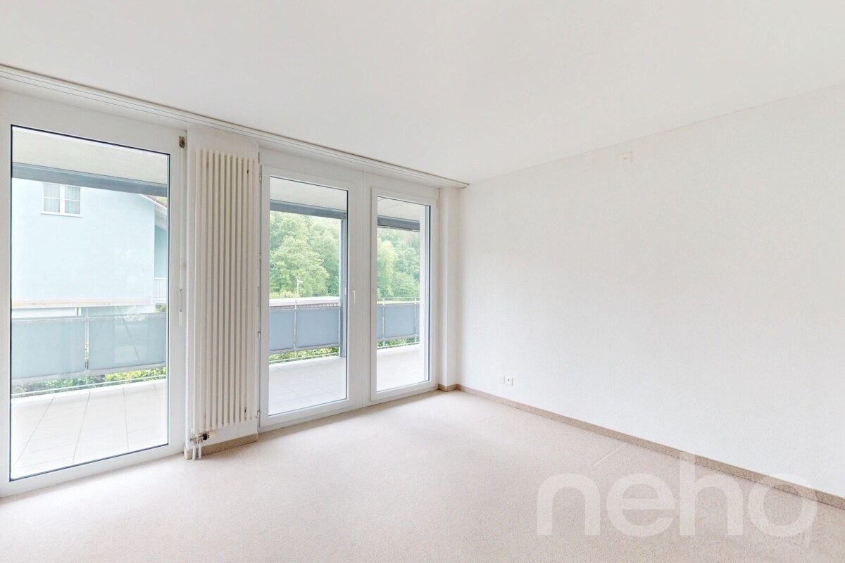 Entdecken Sie Ihr neues Zuhause in dieser lichtdurchfluteten 4.5-Zimmer Wohnung im 1. Obergeschoss an familienfreundlicher und ruhiger Wohnlage. Die südwestliche Ausrichtung sorgt für optimale Sonneneinstrahlung und schafft eine warme, einladende Atmosphäre. Eines der Highlights ist der grosszügige gedeckte Balkon mit einer Fläche von 25 m2. Hier geniessen Sie den Blick auf den Wald. Mit drei geräumigen Schlafzimmern, einem grosszügigen Wohn- und Essbereich und einer offenen Küche, bietet diese Wohnung ausreichend Platz. Die Wohnung verfügt über eine mit Nasszelle mit einer Dusche und einem Waschturm. Ein separates WC befindet sich neben der Nasszelle.