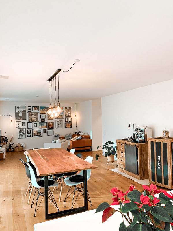 - Wohn/Esszimmer mit grosszügiger Fensterfront und direktem Zugang zum Sitzplatz und Rasenfläche