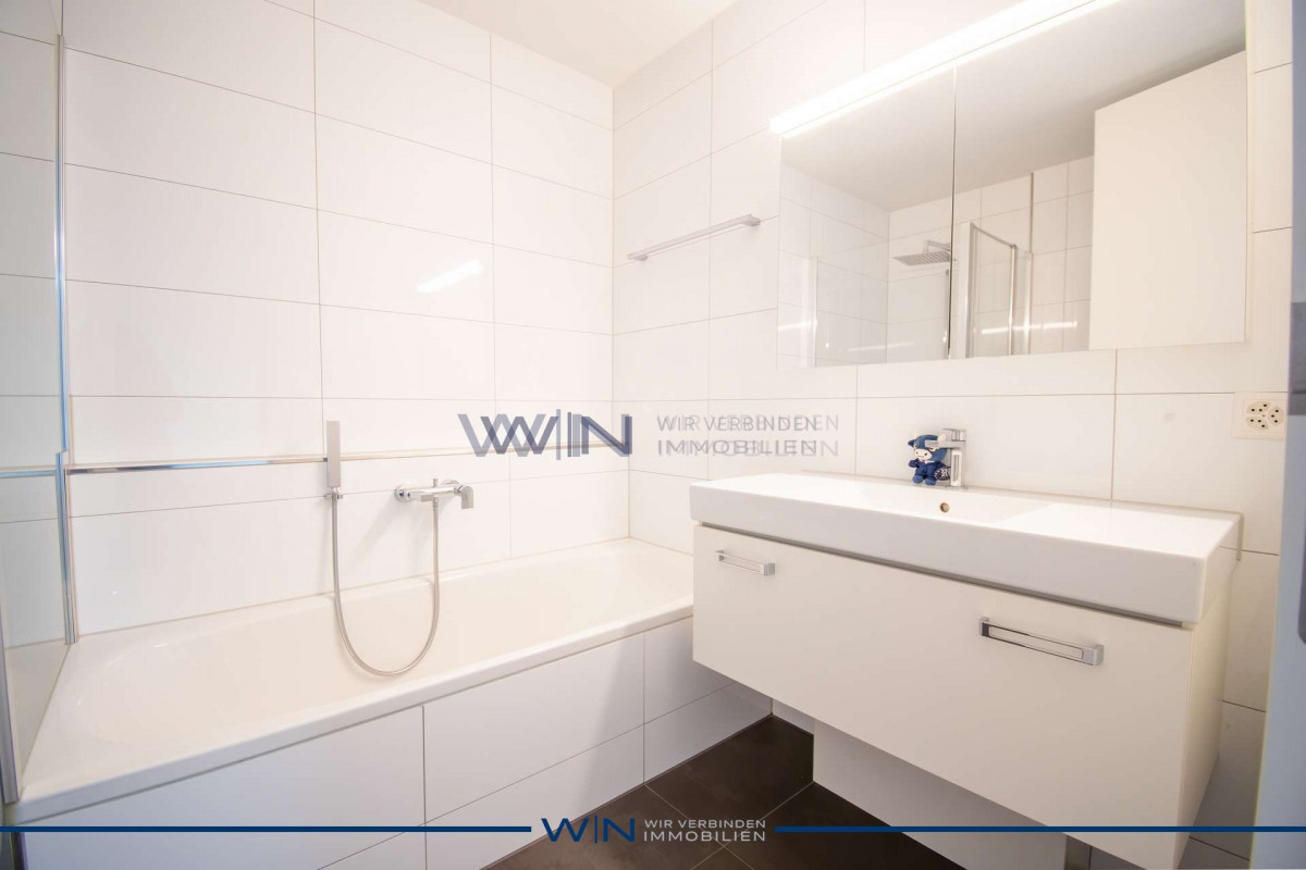 Zwei moderne Badezimmer ? eines mit Badewanne, eines mit begehbarer Dusche ? bieten Komfort für jede Lebenssituation. Das grosszügige Schlafzimmer mit Bad en suite schenkt zusätzliche Privatsphäre und Rückzugsmöglichkeiten. Die eigene Waschküche in der Wohnung sorgt für maximale Alltagserleichterung.