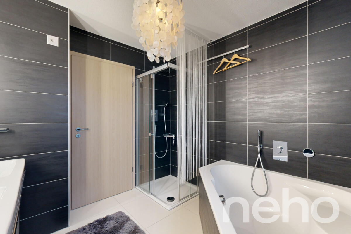 Eine herrliche 76 m² große Terrasse veredelt diese einzigartige Immobilie. Die Abdichtung wurde komplett erneuert, und es wurden 25.000 CHF investiert, damit der Käufer die Terrasse nach seinen Wünschen gestalten kann ? zum Beispiel mit einem Whirlpool für unvergleichliche Momente der Entspannung. Die Nordwestausrichtung durchflutet die Räume mit natürlichem Licht und schafft den ganzen Tag über eine einladende Atmosphäre.<...