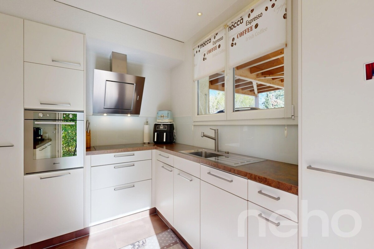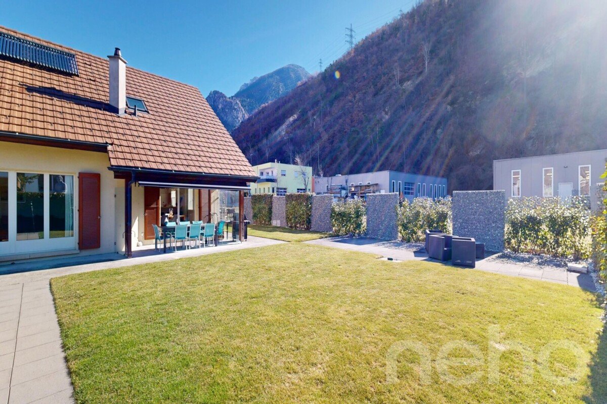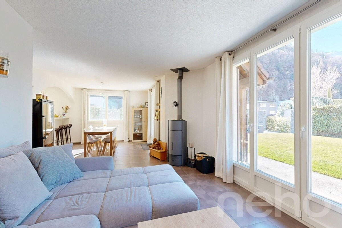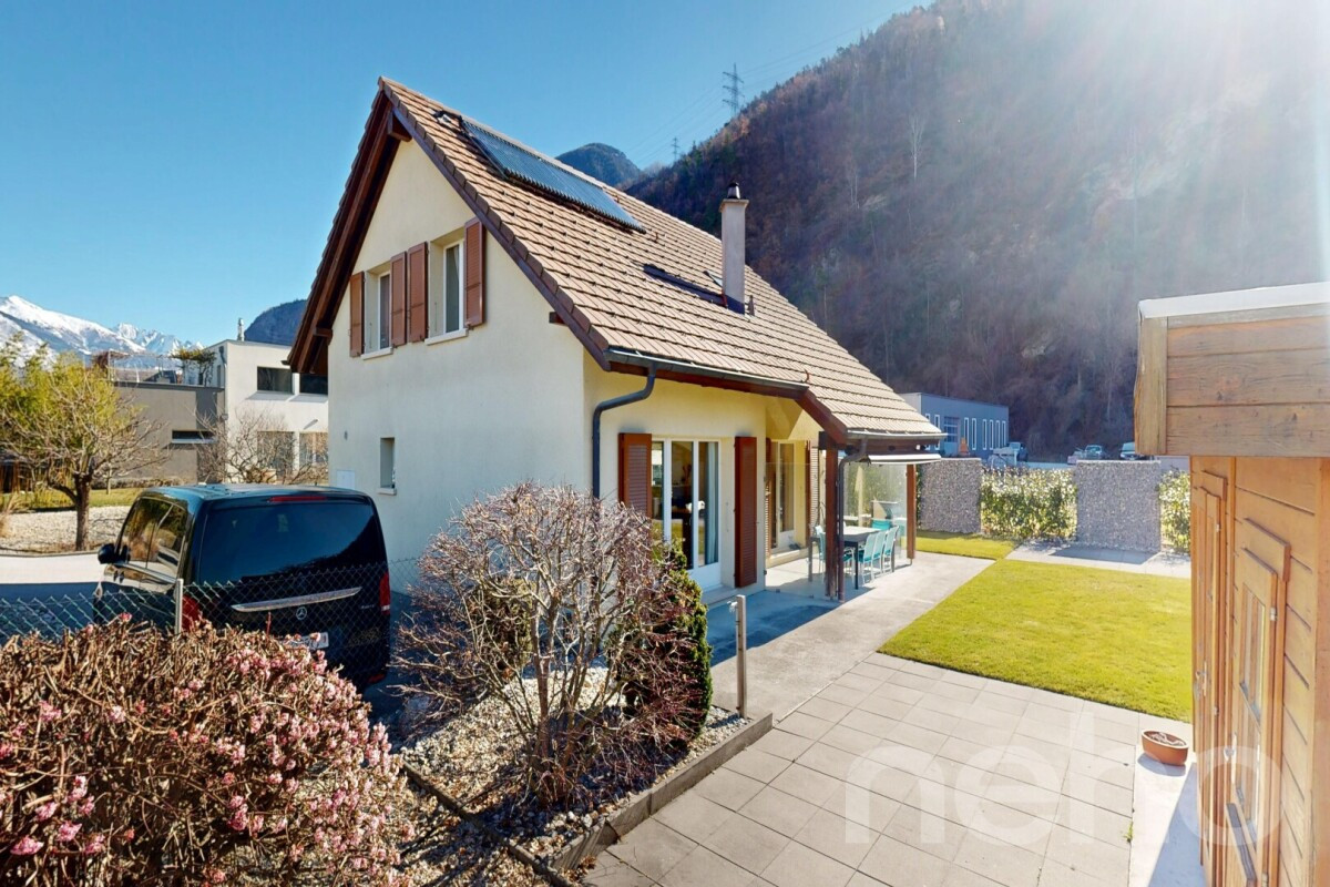 Située dans un quartier agréable de Chippis et bénéficiant d'une très belle exposition, cette charmante maison de 5.5 pièces séduira les personnes à la recherche de confort, de luminosité et d'un cadre de vie paisible.Implantée sur une parcelle soigneusement aménagée, la propriété dispose d'un magnifique jardin arboré, entièrement clôturé, offrant un espace idéal pour profiter des beaux jours en toute tranquillité. Un carport permet d'abriter deux véhicules et plusieurs places de parc extérieures offrent encore de la place pour deux à trois voitures supplémentaires.Au niveau principal, la maison propose un espace de vie convivial et lumineux. La cuisine ouverte sur la salle à manger et le séjour crée une atmosphère chaleureuse et fonctionnelle. Cet espace s'ouvre directement sur une vaste terrasse d'environ 60 m², véritable prolongement de la maison, donnant accès au grand jardin. Un poêle à bois a été installé dans le séjour, apportant confort et convivialité durant la saison hivernale. À ce niveau, vous trouverez également un économat pratique ainsi qu'un local technique. Le chauffage de la maison est assuré par un système au gaz avec distribution au sol.À l'étage, l'espace nuit se compose de quatre chambres agréables et lumineuses. Une belle salle de bain équipée d'un Velux complète cet étage.Une opportunité à ne pas manquer pour les familles ou toute personne souhaitant profiter d'une maison confortable avec de beaux espaces extérieurs.
