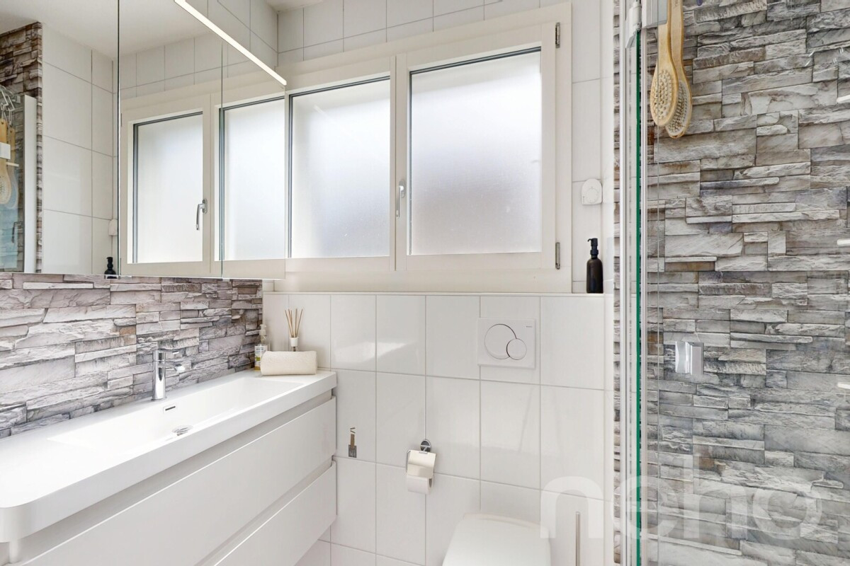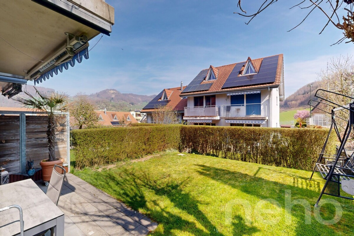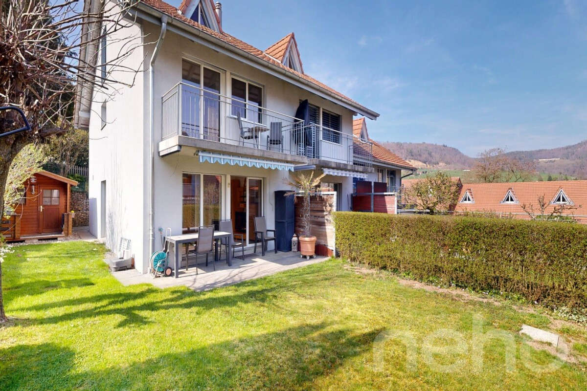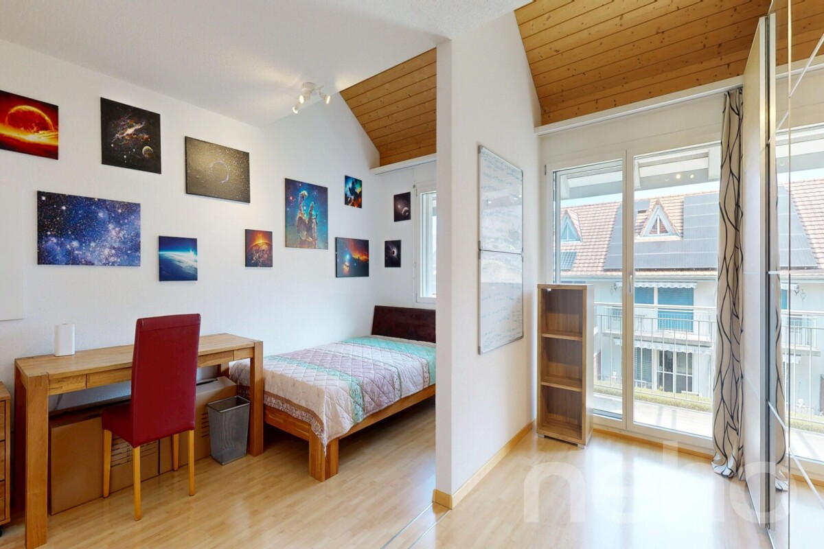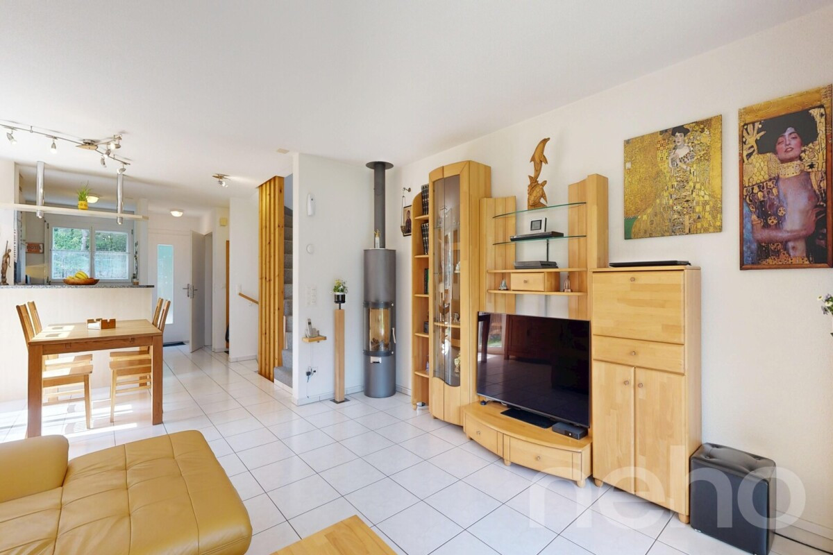 Dieses charmante Haus befindet sich in einer familienfreundlichen Überbauung in unmittelbarer Nähe zur Natur sowie zu öffentlichen Verkehrsmitteln, Kindergarten und Schulen.Im Erdgeschoss erwartet Sie ein einladender Eingangsbereich mit Garderobe, ein Gäste-WC sowie eine halb-offene Küche mit Granitarbeitsplatte. Der angrenzende Wohn- und Essbereich bietet direkten Zugang zum nach Süden ausgerichteten, pflegeleichten Garten mit gedecktem Sitzplatz und einem Gartenhaus.Im 1. Obergeschoss befinden sich zwei Schlafzimmer, wobei eines davon bei Bedarf problemlos unterteilt werden kann. Eines der Zimmer verfügt über einen Zugang zum Balkon. Ergänzt wird diese Etage durch das im Jahr 2022 renovierte Badezimmer, das mit einer Duschkabine ausgestattet ist.Das ausgebaute Dachgeschoss bietet ein rund 20 m² grosses Zimmer, das sich ideal als Schlafzimmer, Büro oder Hobbyraum nutzen lässt.Das grosszügige Untergeschoss mit praktischen Einbauschränken bietet zusätzlichen Stauraum und Platz für eine Werkstatt. Ebenfalls ist hier die gesamte Haustechnik untergebracht. Von hier aus gelangen Sie direkt in die Einstellhalle, wo sich der zum Haus gehörende Parkplatz mit Anschlussmöglichkeit für eine E-Ladestation befindet. Ein gemeinschaftlicher Spielplatz sowie ausreichend Besucherparkplätze runden dieses attraktive Angebot ab.