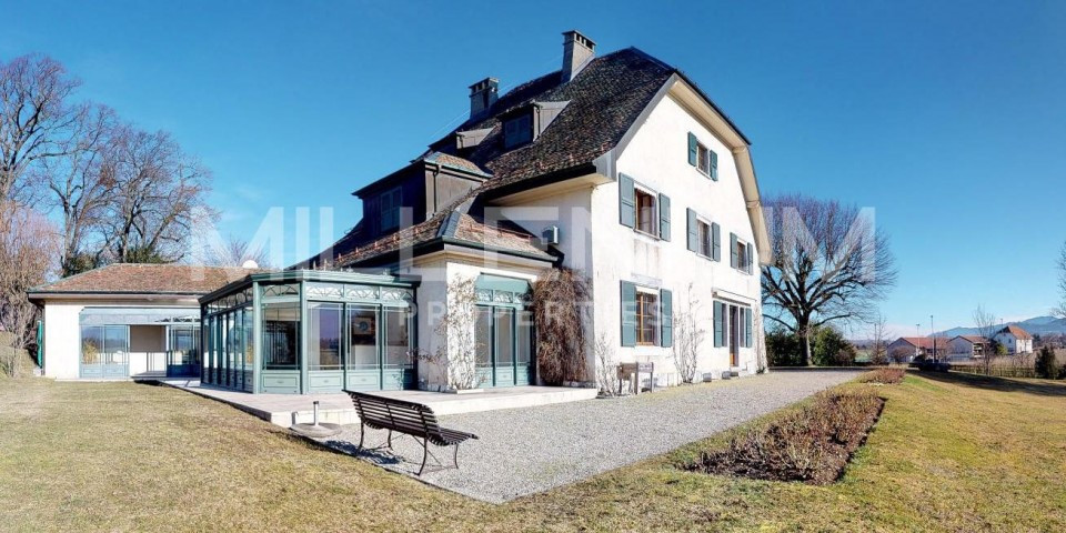 Erected on a plot of 6,618 m2, this beautiful residence from the beginning of the last century overlooks the valley at Jussy and offers a clear and panoramic view of the Alps and the Geneva countryside.