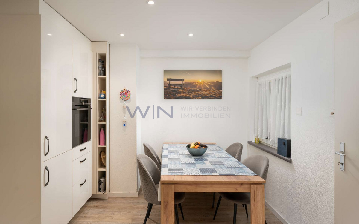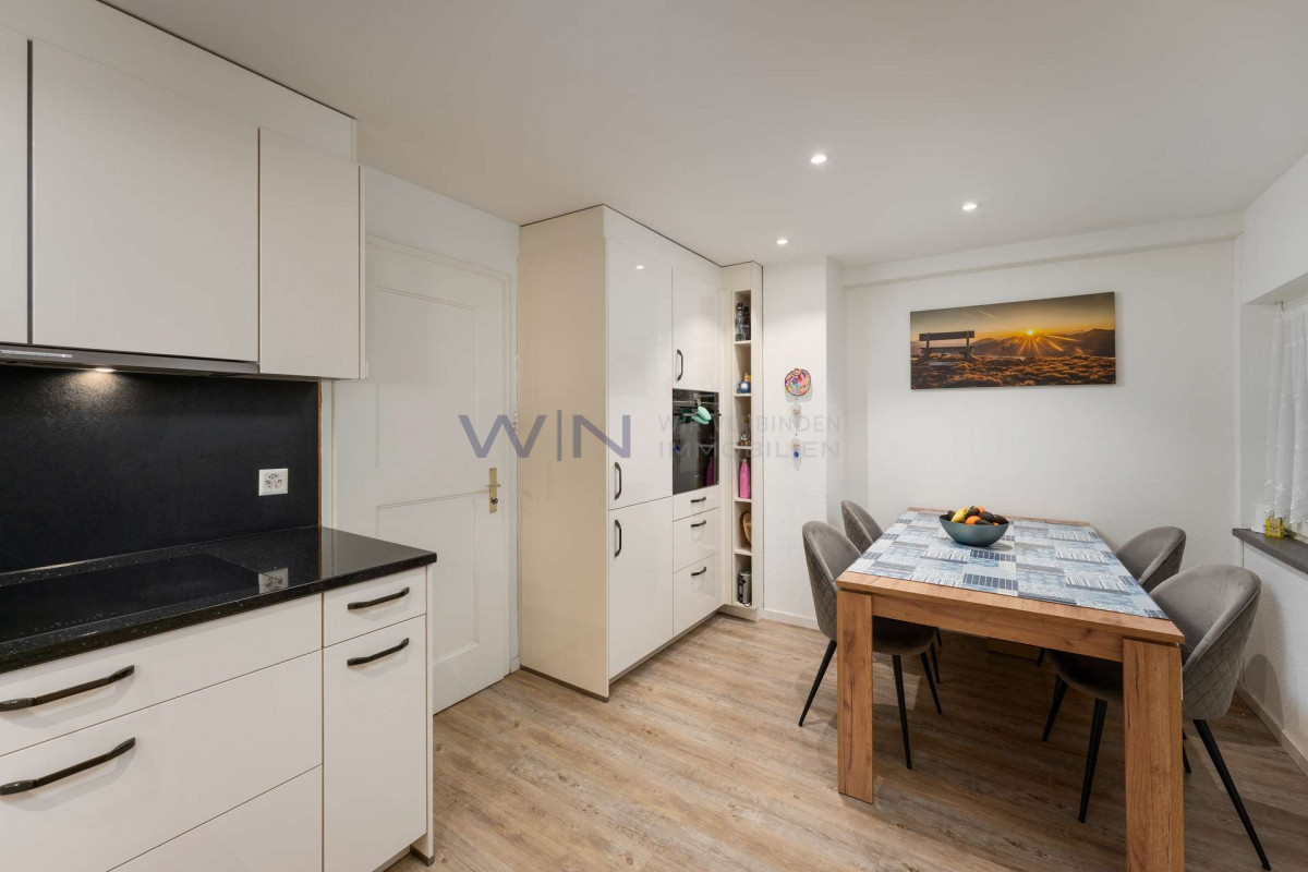 Schon beim Eintreten zeigt sich, dass hier Wohnqualität und Beständigkeit im Einklang stehen. Ihr neues Eigenheim strahlt Ruhe und Verlässlichkeit aus und wurde über Jahre hinweg sorgfältig unterhalten, gezielt erneuert und sinnvoll erweitert. Die Qualität zeigt sich nicht aufdringlich, sondern in der Klarheit und Stimmigkeit des Ganzen. Der Anbau hat den Wohnraum spürbar aufgewertet. Grosszügige Raumverhältnisse und viel Tageslicht prägen den Alltag. Grosse Fenster schaffen eine natürliche Verbindung zum Garten, während der Schwedenofen dem Wohnbereich besonders in den kühleren Monaten eine warme, behagliche Atmosphäre verleiht. Küche und Badezimmer präsentieren sich modern, funktional und zeitlos gestaltet. Sie fügen sich harmonisch ins Haus ein und unterstreichen den hohen Anspruch an Ausführung und Langlebigkeit. Ergänzend steht im Untergeschoss ein beheiztes Zimmer mit Fenster zur Verfügung, das flexibel genutzt werden kann, etwa als Büro oder Gästezimmer. Auch der Aussenbereich lädt zum Verweilen ein. Garten, Laube und gedeckte Terrasse bieten Raum für Erholung und gemeinsame Momente im Freien. Ein Zuhause, das durch Pflege, Substanz und ein stimmiges Gesamtgefühl überzeugt.