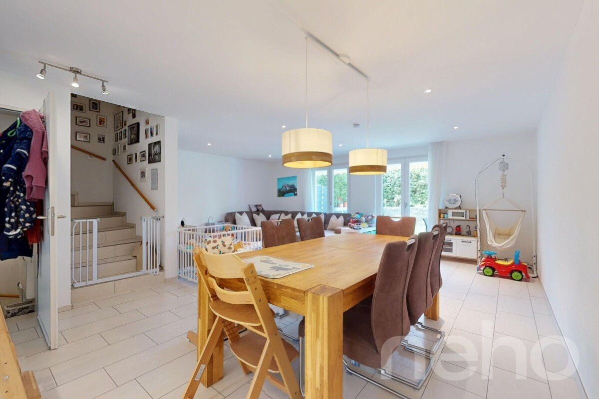 Dieses attraktive 6.5-Zimmerhaus bietet auf rund 145 m² Nettowohnfläche ein einmaliges Wohngefühl. Die großzügigen Terrassen auf drei Seiten laden zum Verweilen und Entspannen ein, während der Blick ins Grüne für Ruhe und Erholung sorgt. Dachschrägen verleihen den Räumen besonderen Charme und schaffen eine behagliche Atmosphäre. Ein ausgebautes Zimmer im Keller bietet vielfältige Nutzungsmöglichkeiten - ideal als Hobbyraum, Büro oder Gästezimmer. Der integrierte Whirlpool rundet das Angebot ab und garantiert Wellnesskomfort direkt zu Hause. Eine Garage sowie ein zusätzlicher Abstellplatz sind inklusive und sorgen für bequemes Parken. Das familienfreundliche Quartier besticht durch seine ruhige Lage und beste Anbindung an alle wichtigen Infrastrukturpunkte. Dieses exklusive Zuhause verbindet Wohnqualität mit Privatsphäre und ist perfekt für alle, die Wert auf Lebensqualität legen.