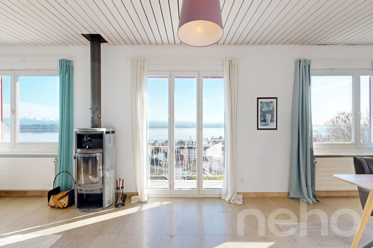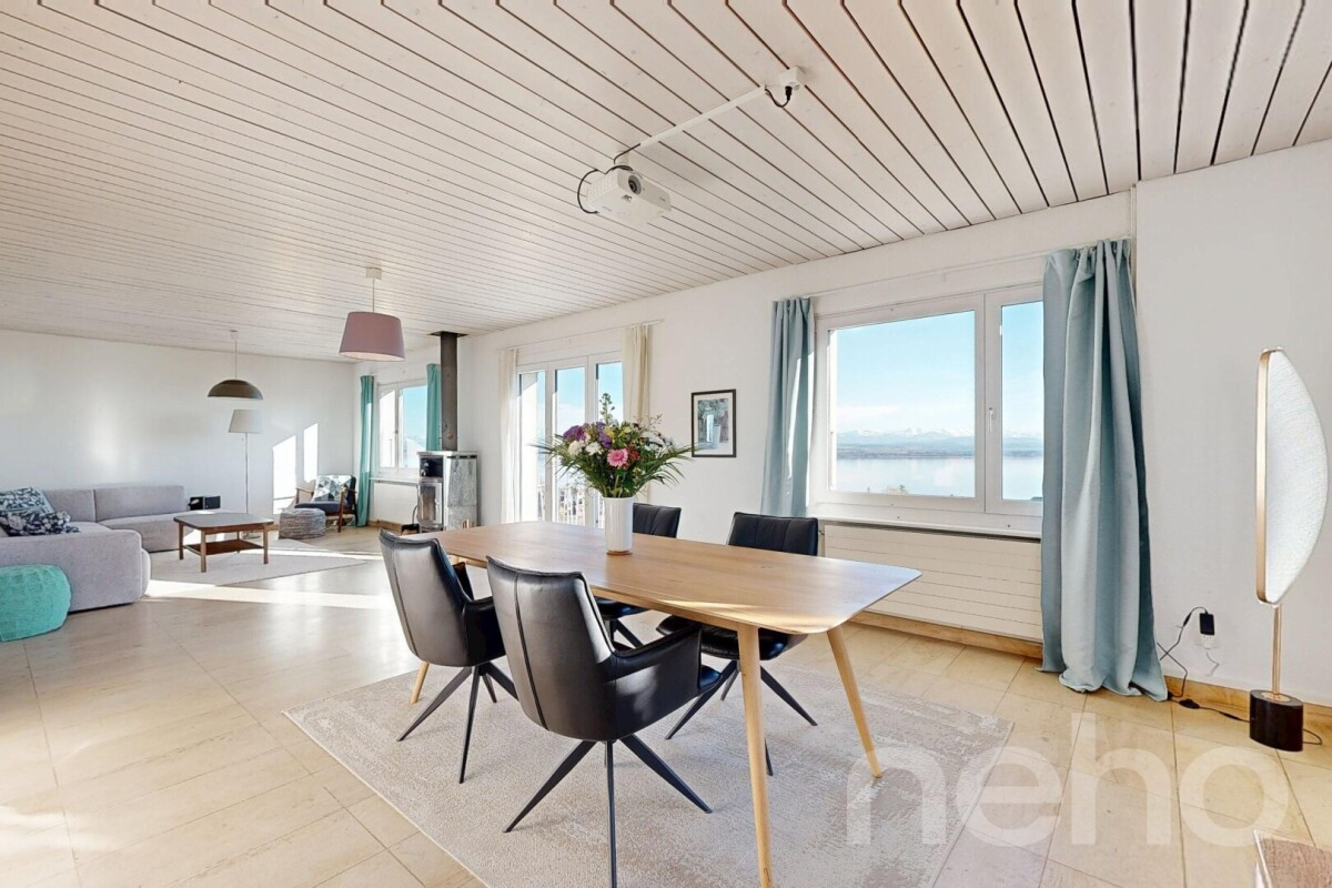 Splendide villa avec appartement additionnel et vue panoramiqueSituée dans un endroit très calme et verdoyant, cette splendide villa bénéficie d'une vue spectaculaire sur le lac de Neuchâtel et les Alpes. Le grand jardin avec potager, l'appartement additionnel de 2.5 pièces au rez-inférieur, les beaux volumes, le bâtiment annexe avec surfaces de rangement, la cuisine avec cheminée ou le très...