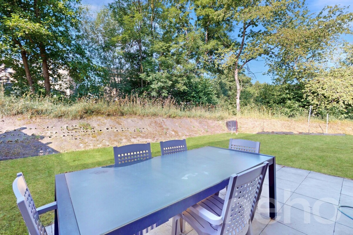 Le jardin, soigneusement entretenu, offre une atmosphère paisible. Un ruisseau le traverse, apportant fraîcheur et sérénité à cet espace extérieur propice à la détente, aux jeux ou à un projet de jardinage.