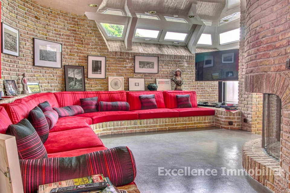1 séjour avec une cheminée ciculaire