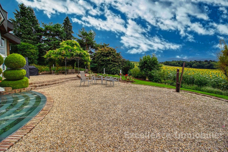 1 énorme jardin avec plusieurs terrasses